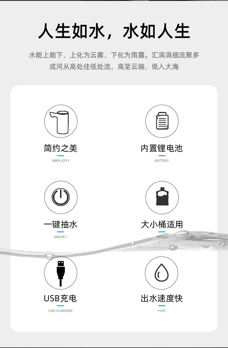 통 물 추출기 전기 물 디스펜서 가정용 지능형 충전식 물 디스펜서 순수한 물 양동이 자동 수압 장치