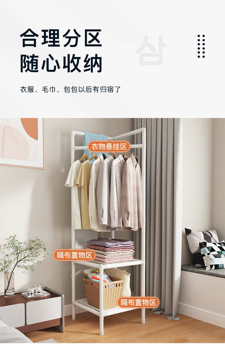 코너 코트 랙 바닥 침실 코너 옷걸이 보관 랙 삼각형 코너 간단한 실내 가정용 옷걸이스토어 가기