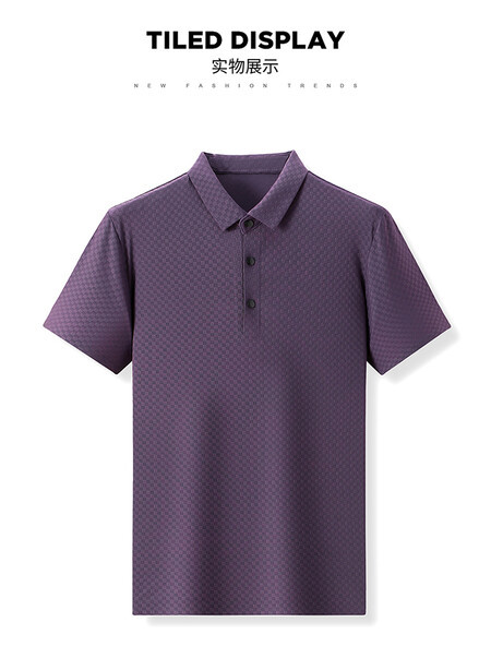 여름 새 남성용 반팔 티셔츠 라펠 세미-이음매없는 스트레치 실크 자카드 다크 체크 얇은 슬림 핏 하프 슬리브스토어 가기