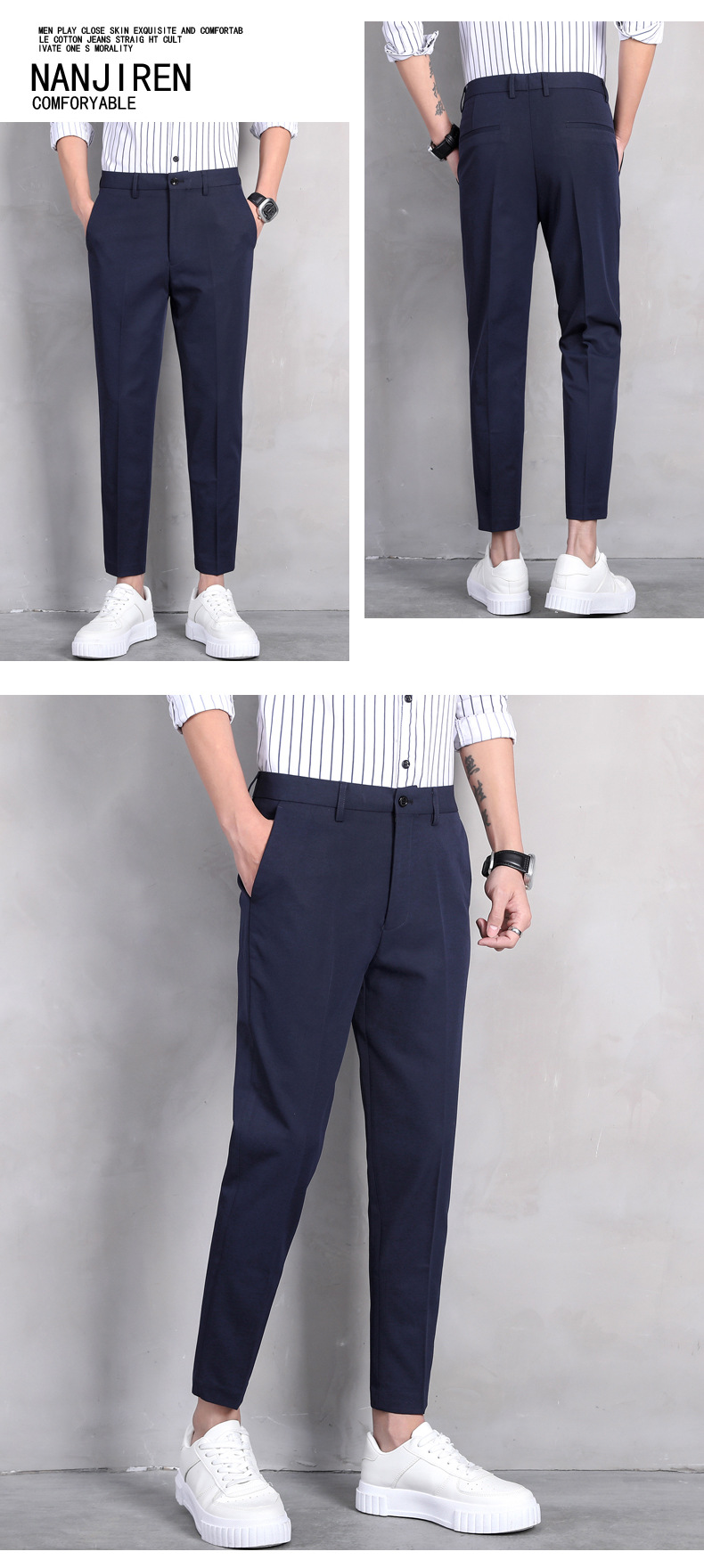 바지 남성 봄과 여름 새로운 한국식 유행 크롭 바지 남성 비즈니스 캐주얼 슬림 핏 세트 바지스토어 가기