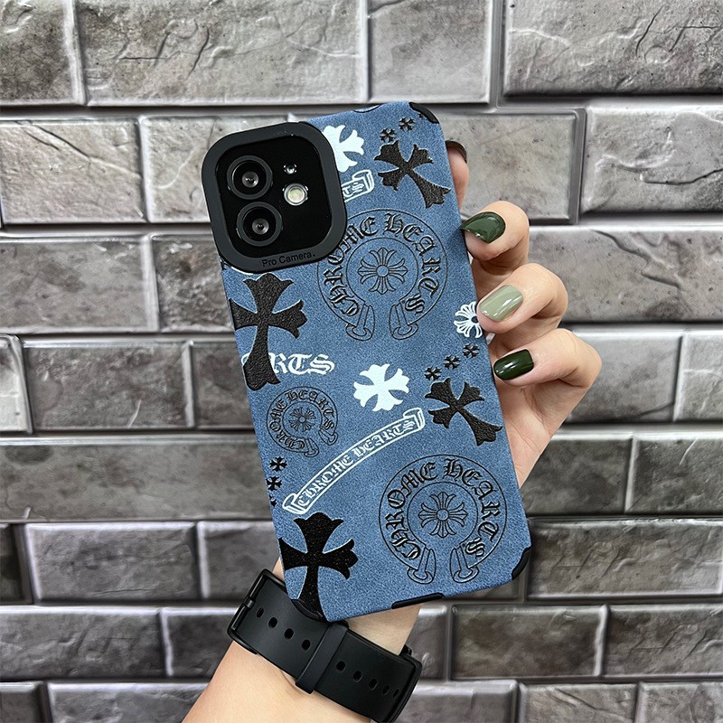 细绒翻毛皮十字花克罗心苹果12手机壳13Pro max个性时尚潮牌适用