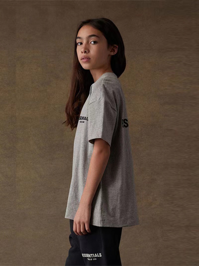 FOG 트렌디 브랜드 아동복 필수 더블 라인 백 더블 로우 플로킹 느슨한 소년 아기 소녀를위한 반팔 티셔츠스토어 가기