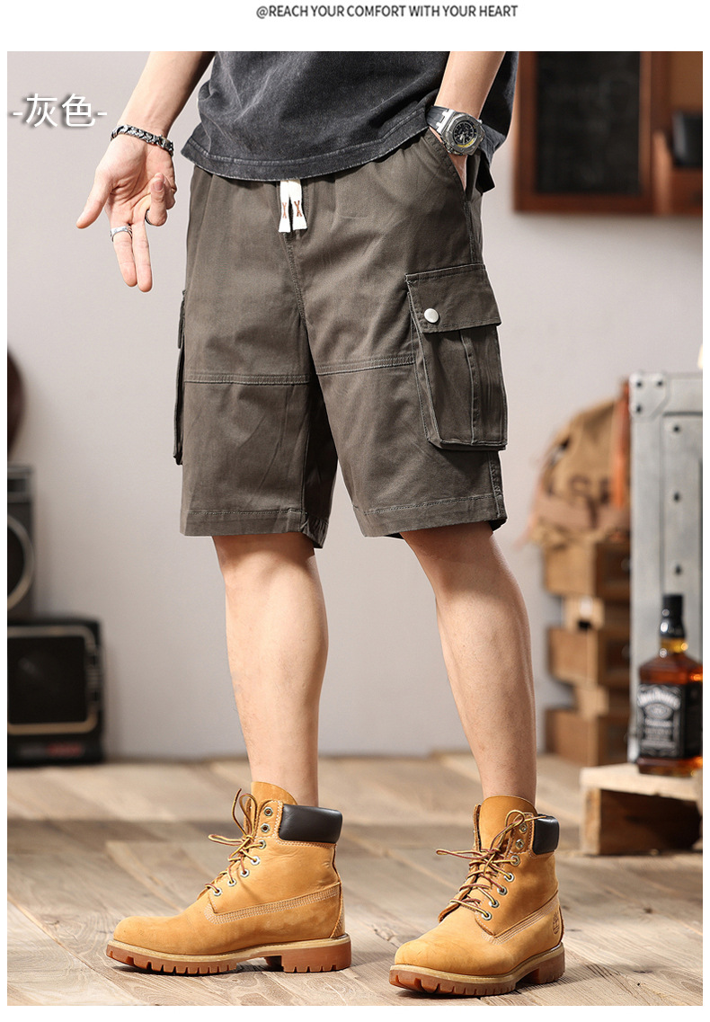 플러스 사이즈 남자의 여름 새로운 미국 스타일 툴링 반바지 남자의 느슨한 플러스 사이즈 트렌디 멀티 포켓 드로스트링 바지