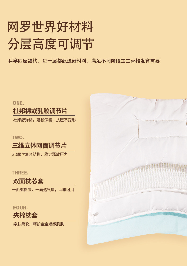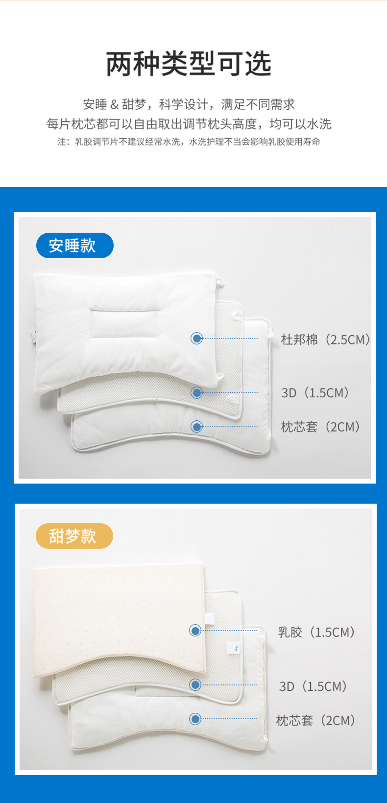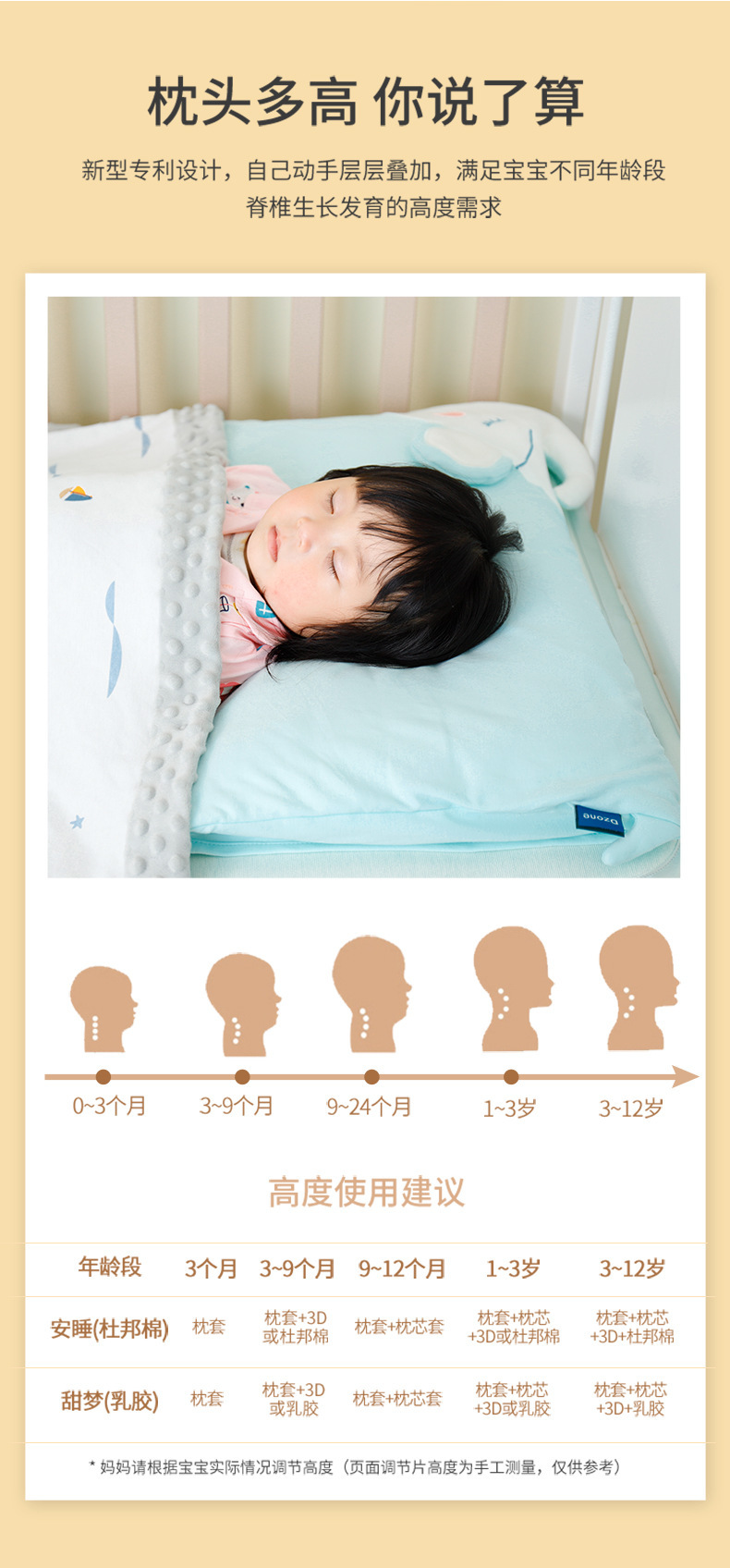 Drone站枕头儿童宝宝枕头杜邦全水洗透气枕0-1-6-12岁睡觉枕