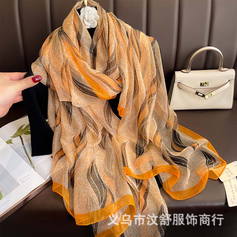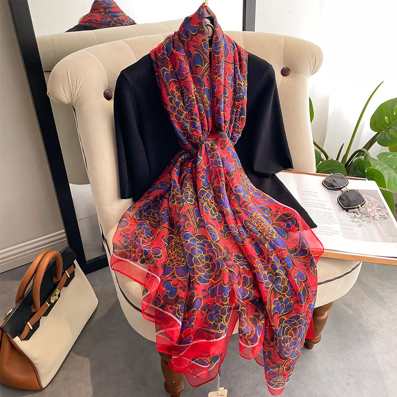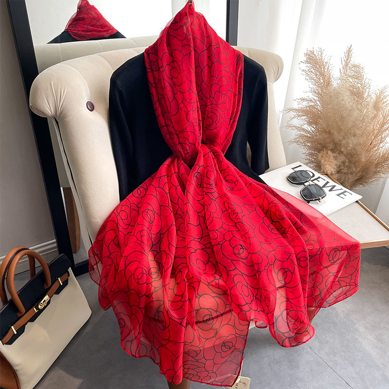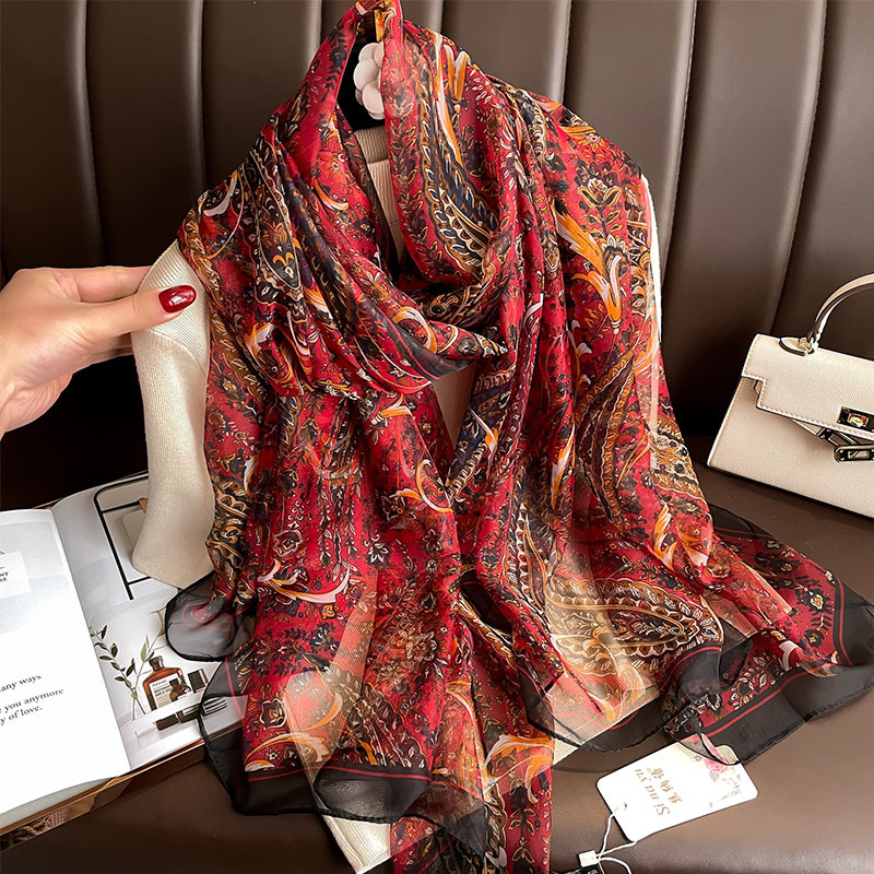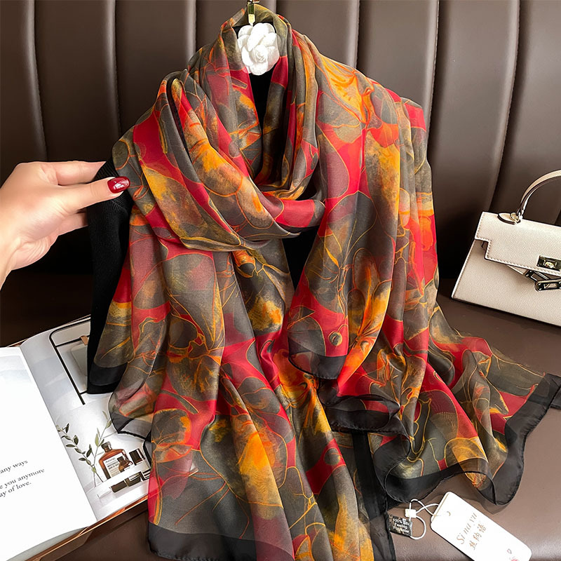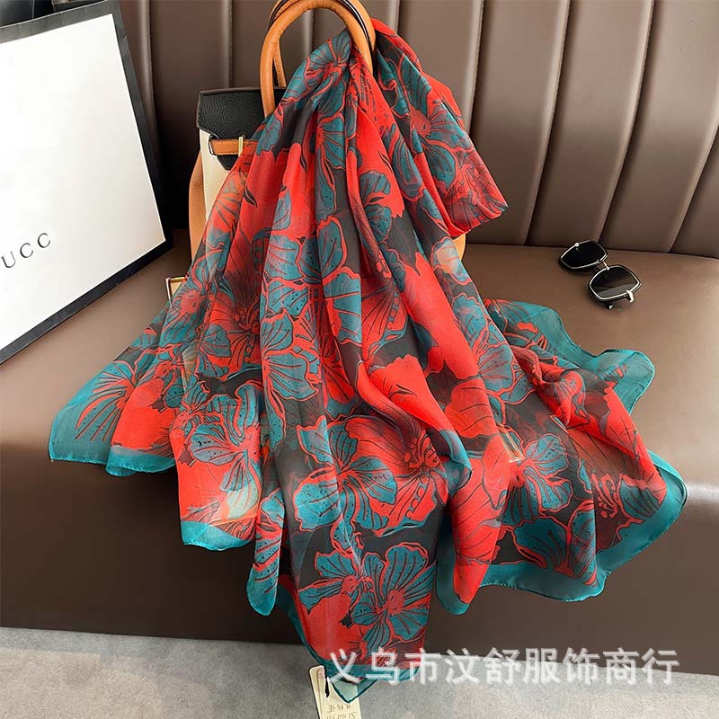 스카프 여성의 인기있는 스카프 올해 항저우 고급 실크 인터넷 레드 스카프 럭셔리 인쇄 숄 비치 타올