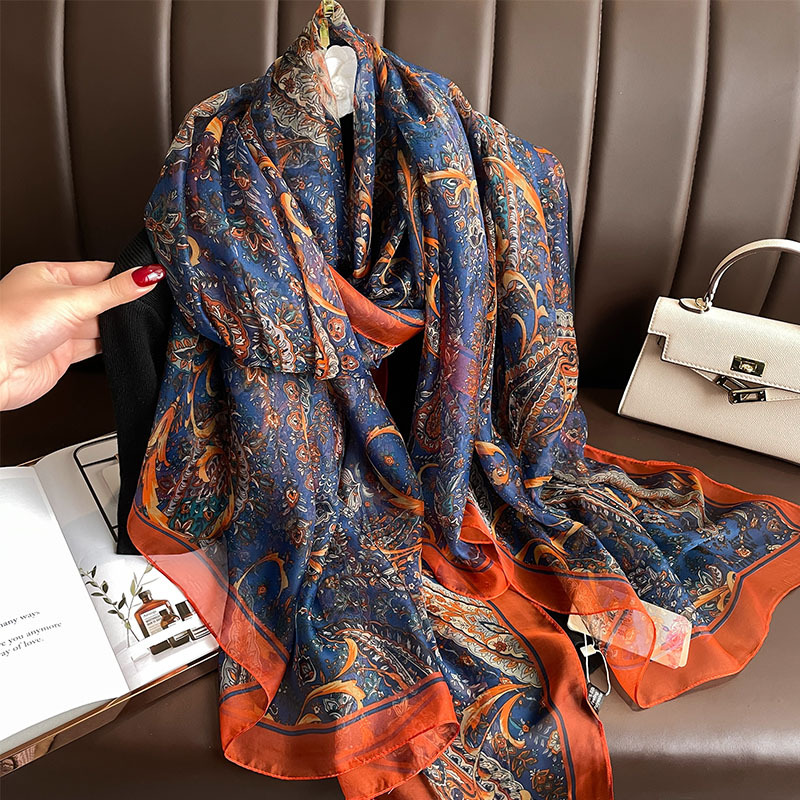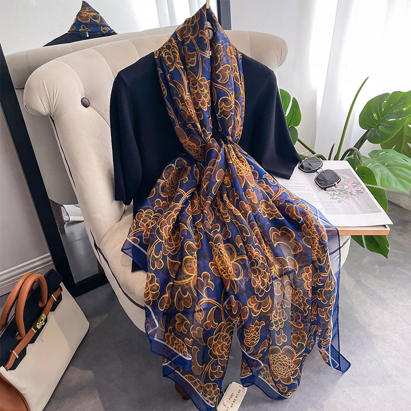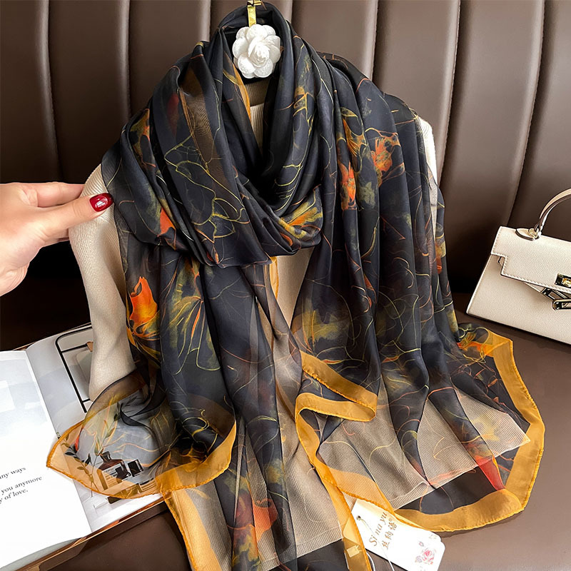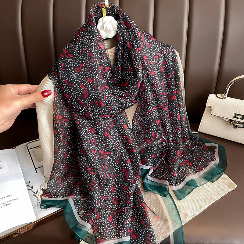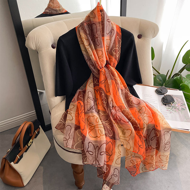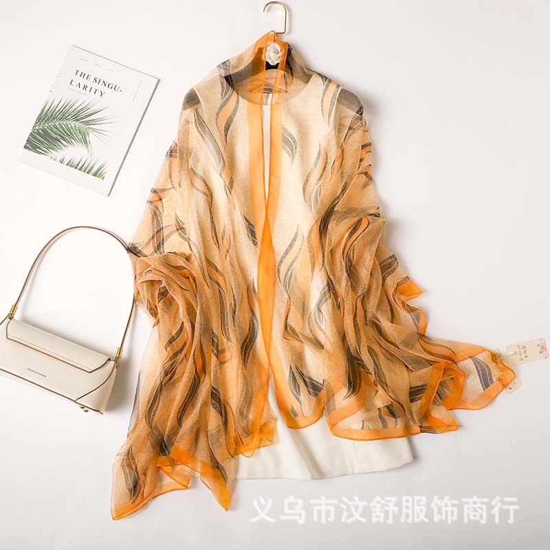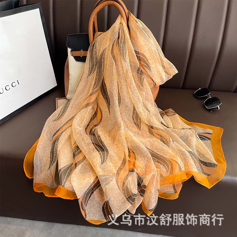 스카프 여성의 인기있는 스카프 올해 항저우 고급 실크 인터넷 레드 스카프 럭셔리 인쇄 숄 비치 타올