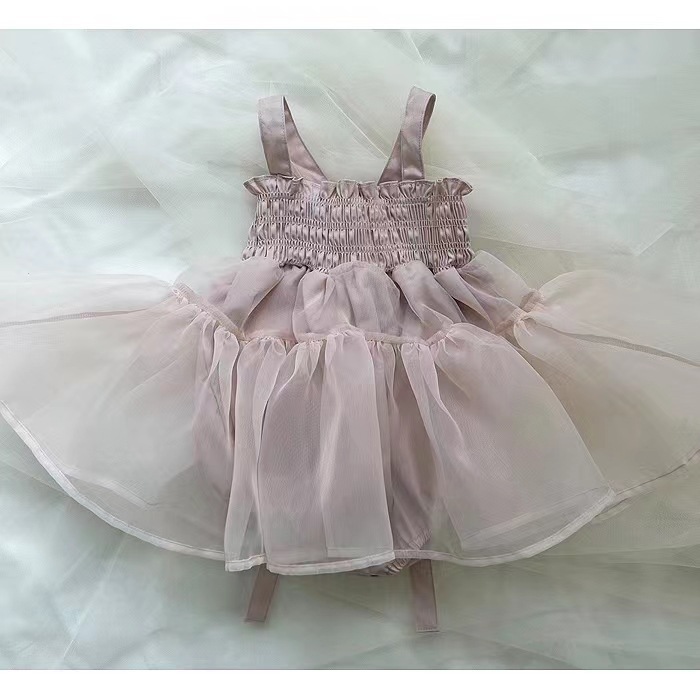 소녀 여름 한국 스타일 작은 소녀 슬립 스커트 아기 소녀 메쉬 퍼프 스커트 어린이 민소매 공주 스커트