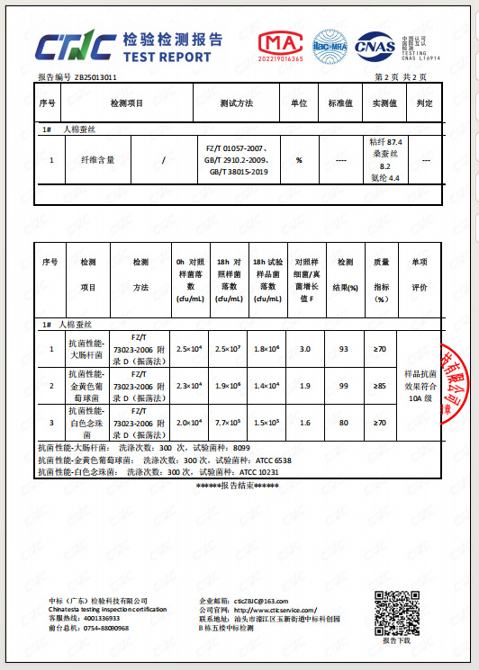 里料:86.8%粘纤 7.4%桑蚕丝 5.8%氨纶