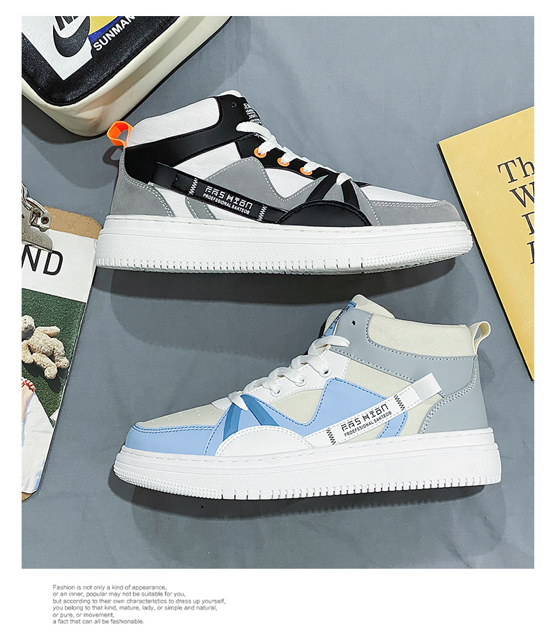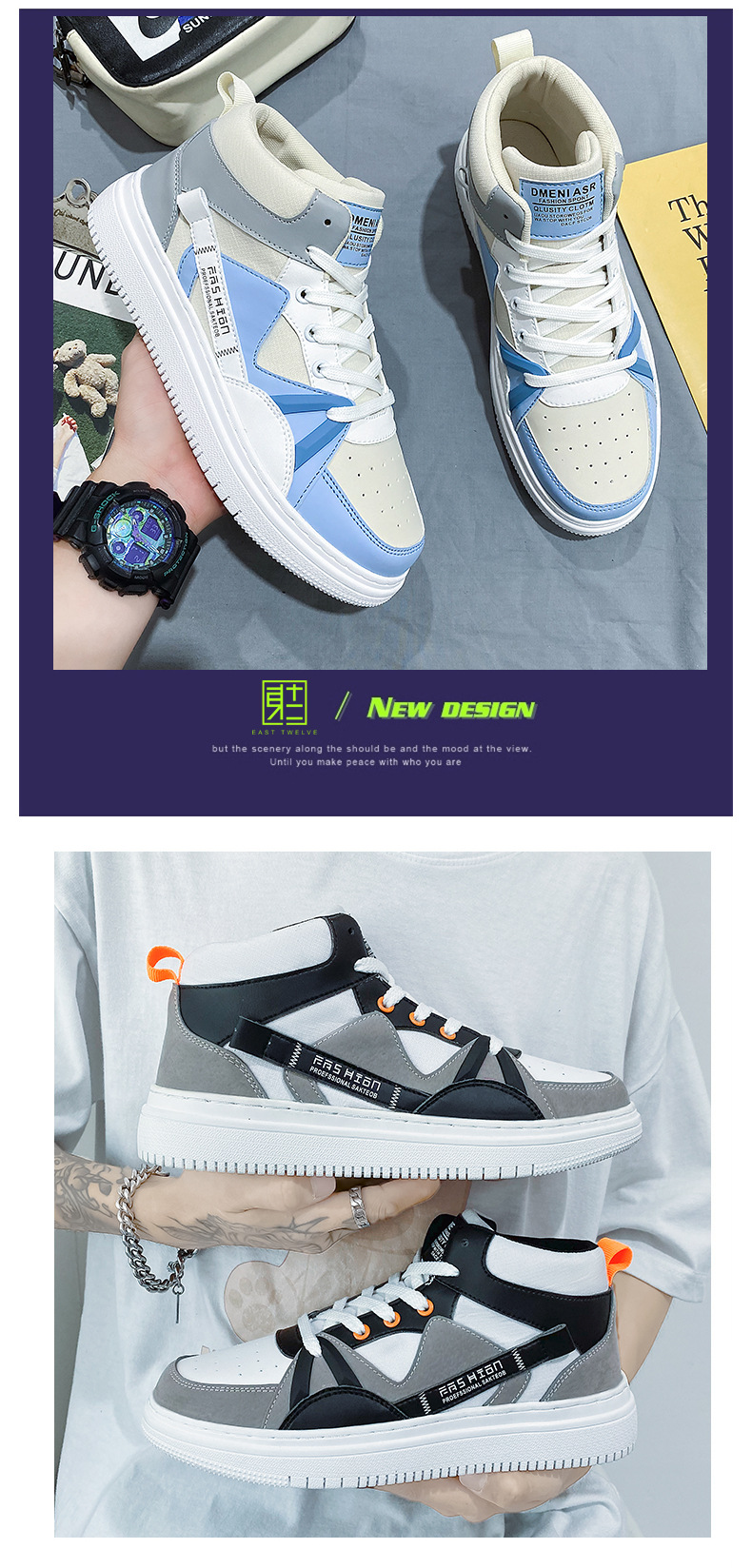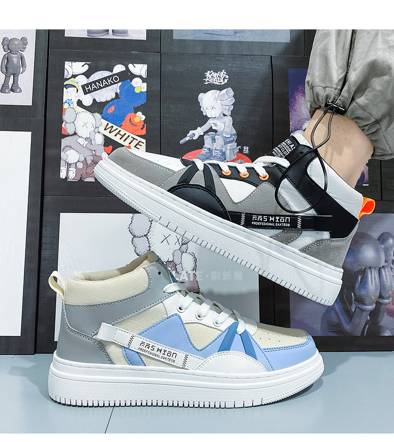 남성 신발 사계절 새로운 하이탑 스포츠 보드 신발 청소년 캐주얼 두꺼운 밑창 내마모성 스케이트 신발 올매치 트렌디 보드 신발