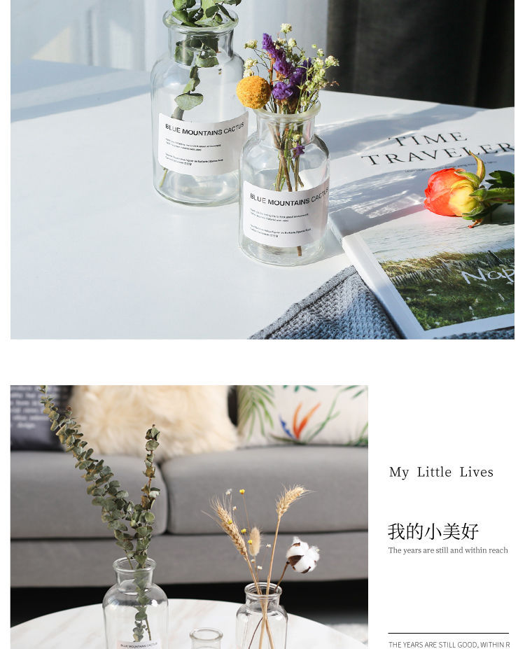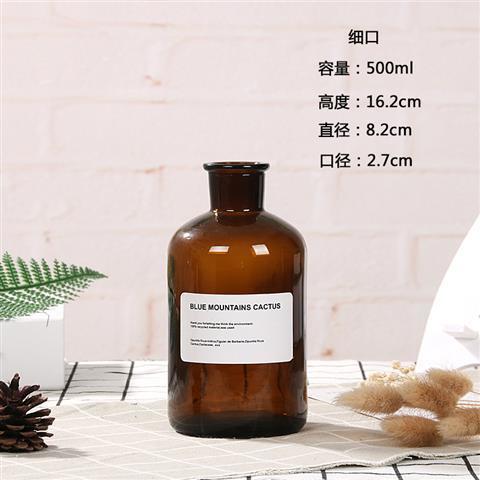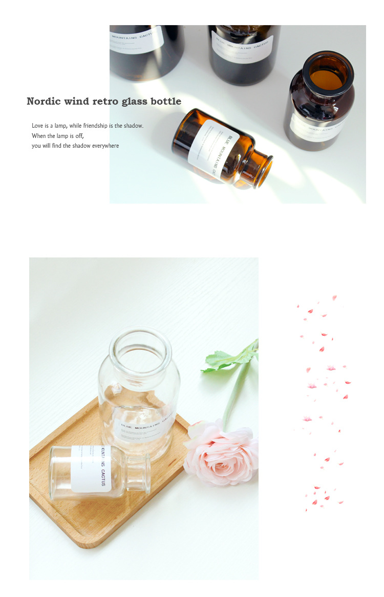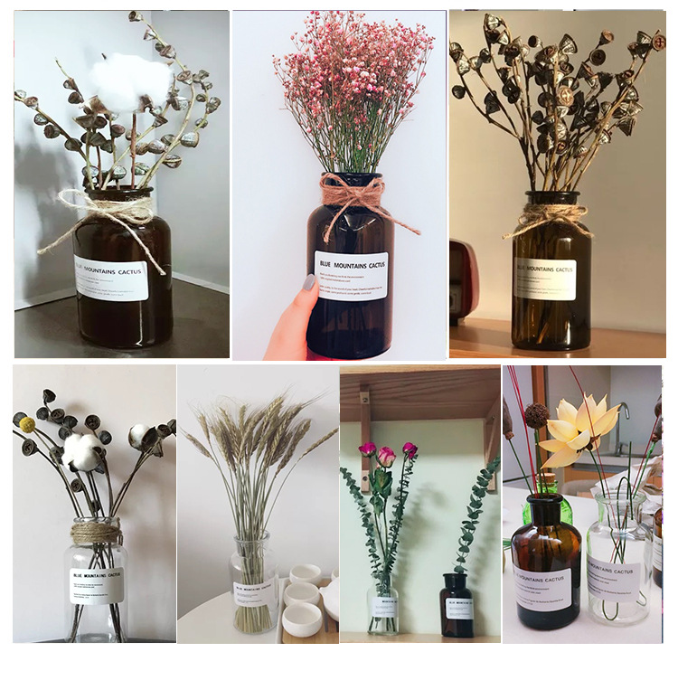 북유럽 스타일 유리 꽃병 홈 인테리어 창의적인 장식품 투명한 드라이 플라워 수경 재배 작은 갈색 병 홈 데코