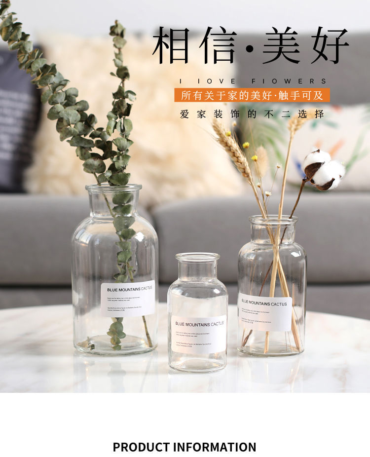 북유럽 스타일 유리 꽃병 홈 인테리어 창의적인 장식품 투명한 드라이 플라워 수경 재배 작은 갈색 병 홈 데코스토어 가기