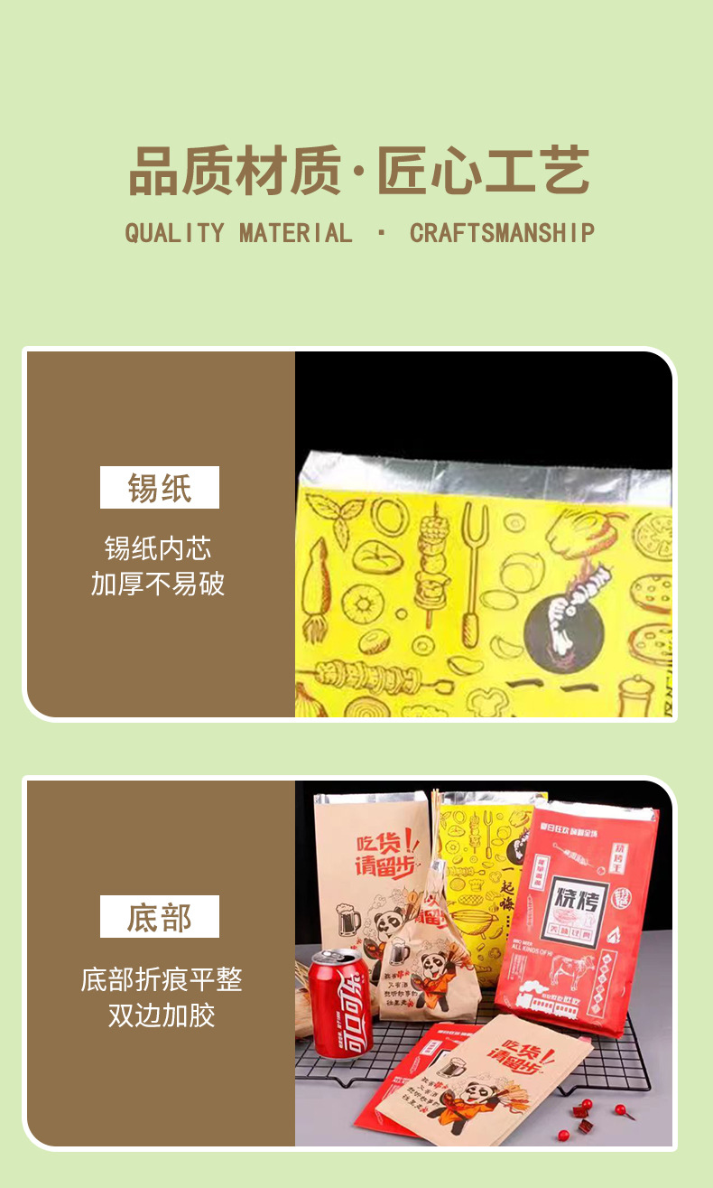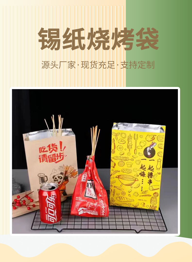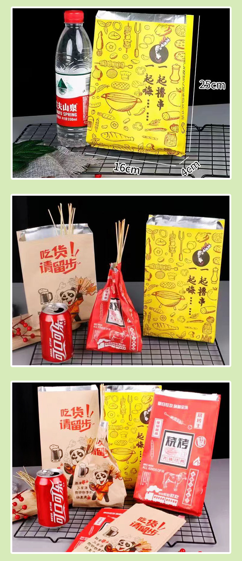 바베큐 주석 종이 포장 가방 끈 식품 내유성 종이 가방 튀김 끈 간식 음식 테이크 아웃 단열 알루미늄 호일 포장 가방