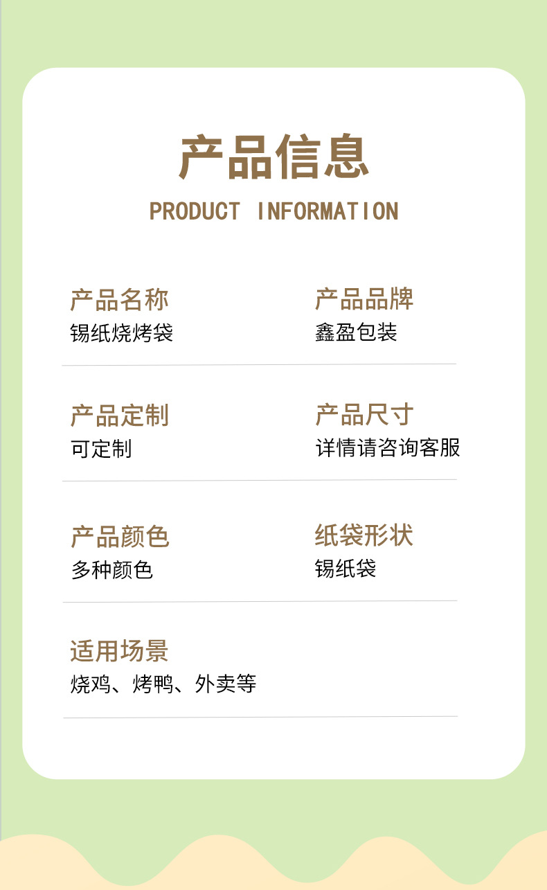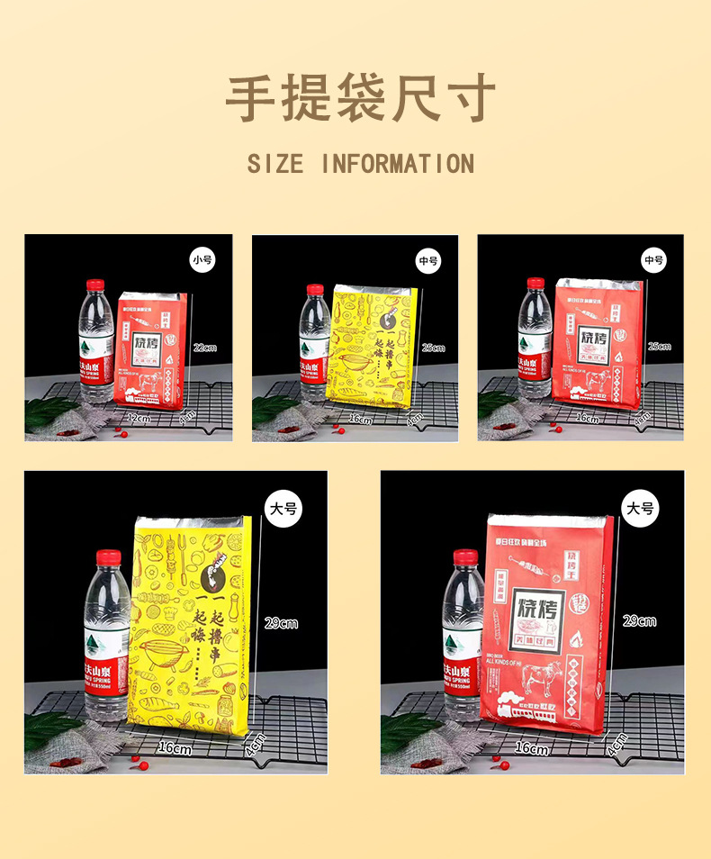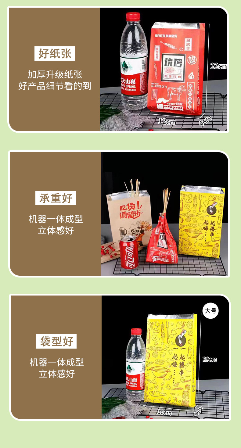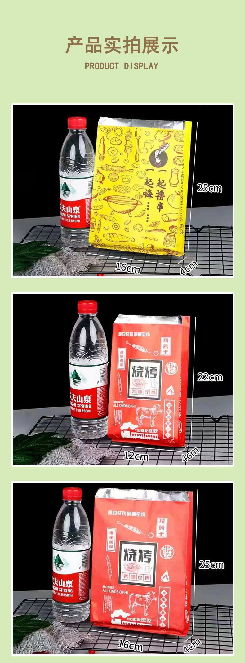 바베큐 주석 종이 포장 가방 끈 식품 내유성 종이 가방 튀김 끈 간식 음식 테이크 아웃 단열 알루미늄 호일 포장 가방