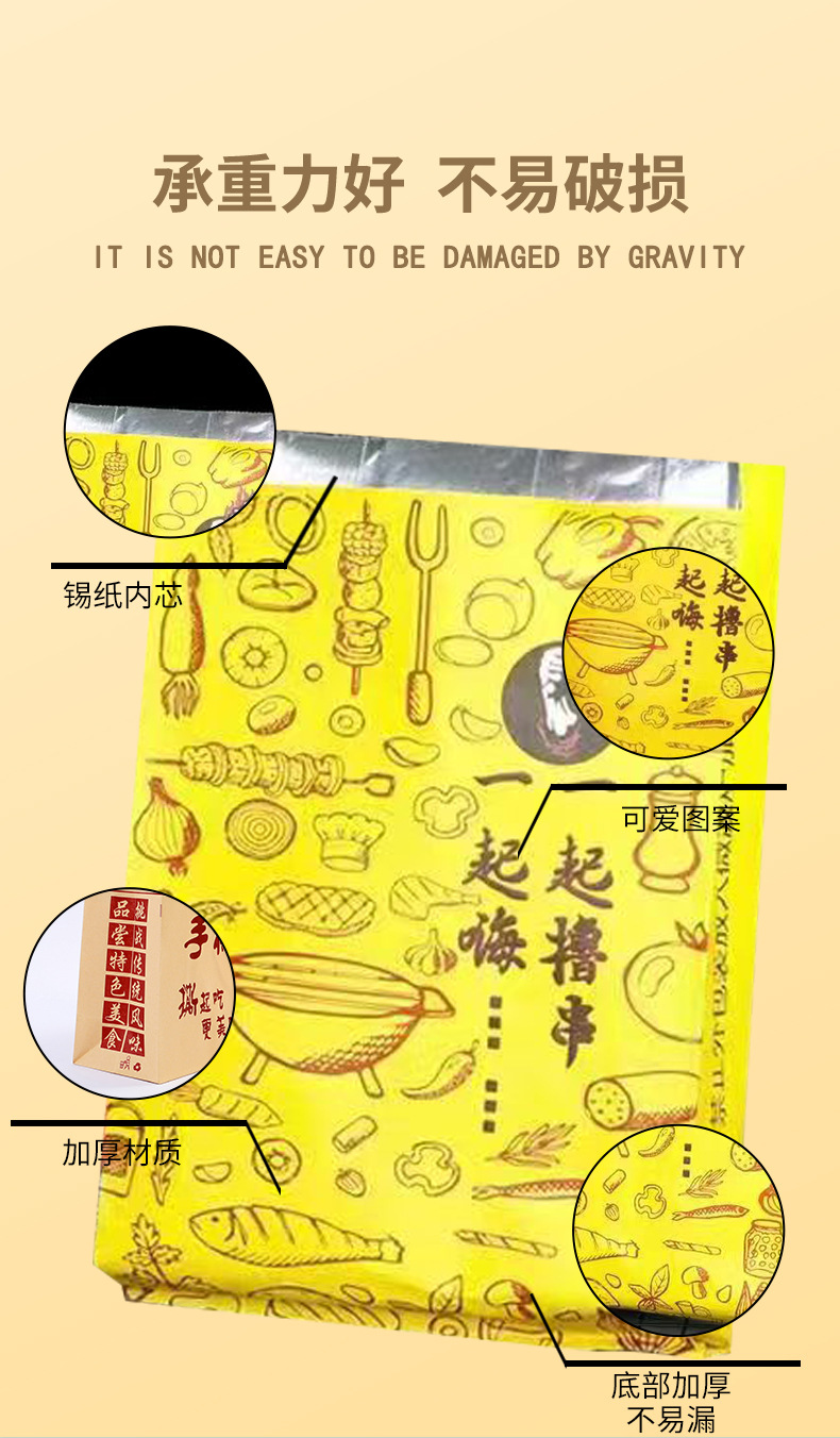 바베큐 주석 종이 포장 가방 끈 식품 내유성 종이 가방 튀김 끈 간식 음식 테이크 아웃 단열 알루미늄 호일 포장 가방스토어 가기