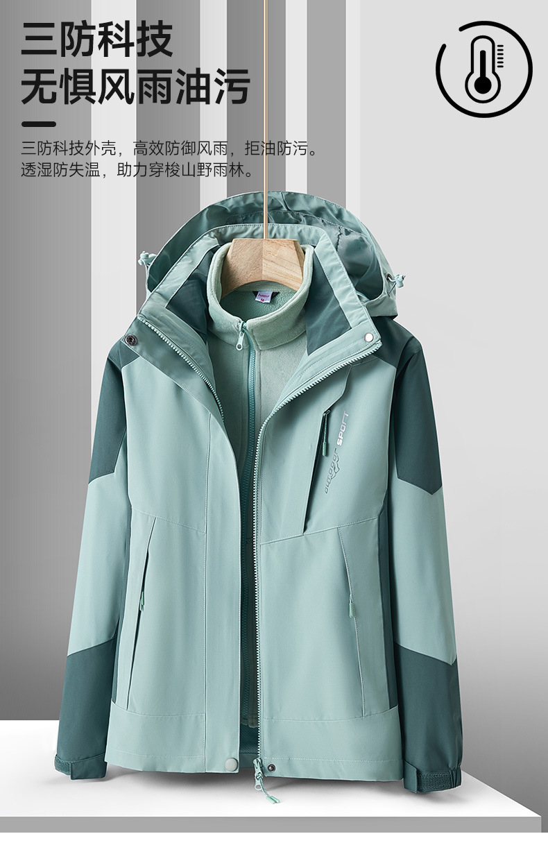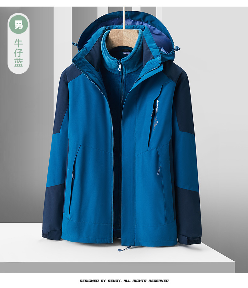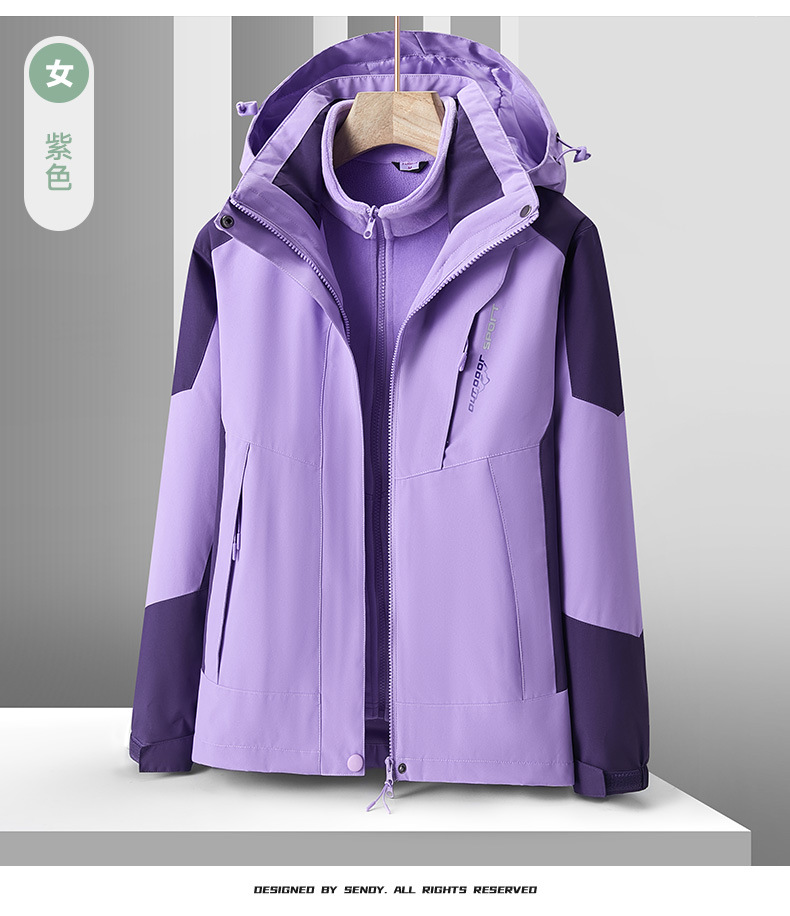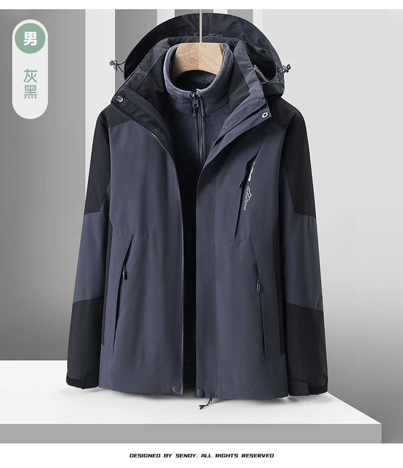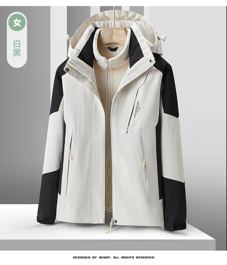 1818S 밍크 벨벳 라이너 충전 의류 여성 커플 3 대 1 이동식 방풍 방수 남성용 따뜻한 재킷