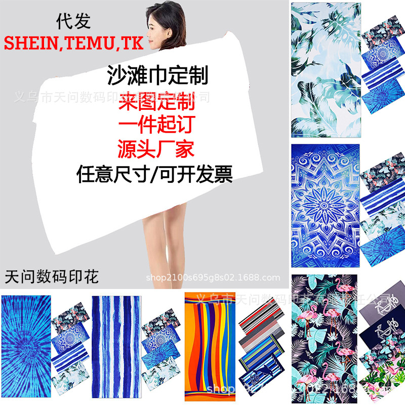 아마존 Xiyin TEMU 국경 간 스트라이프 유럽과 미국 아마존 슈퍼 대형 비치 타월 폴리에스테르 캠핑 타월스토어 가기
