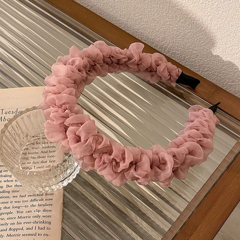 2023 새로운 스타일 메쉬 주름 우아한 헤어밴드 여성용 하이 두개골 탑 워시 페이스 모든 매치 나가는 머리띠 얼굴 작은 헤어 액세서리를 보여주는