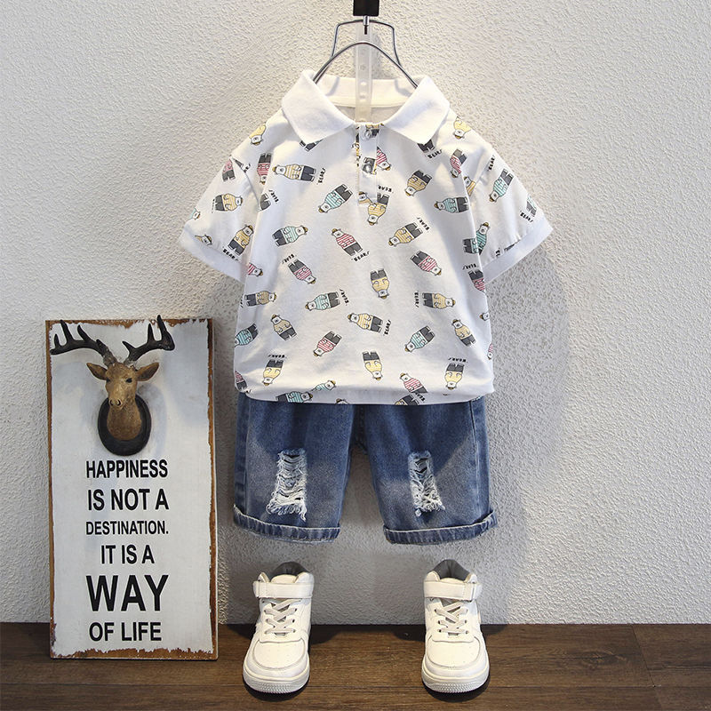TZ036-full 프린트 곰 폴로 셔츠 세트 착용 풀오버 폭발 조수 긴 인