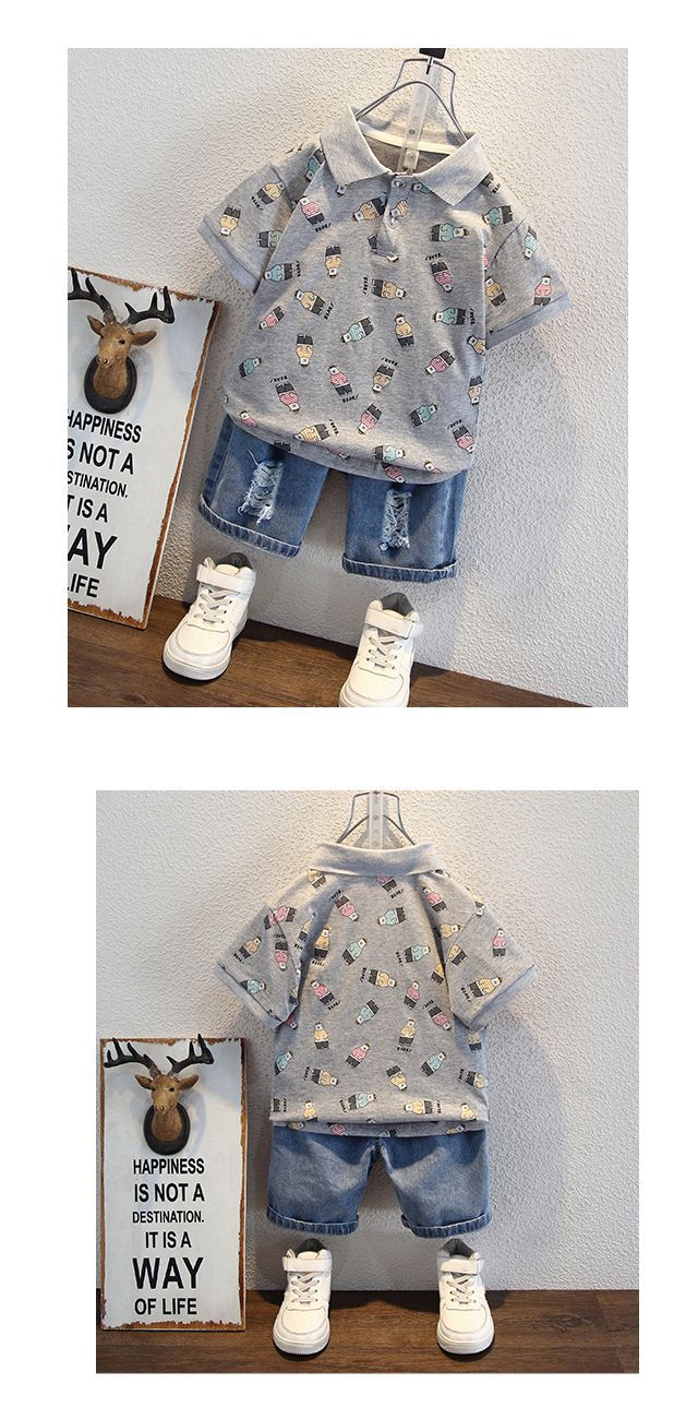 • 전체 인쇄 곰 회색 + 3 개의 구멍 데님 반바지