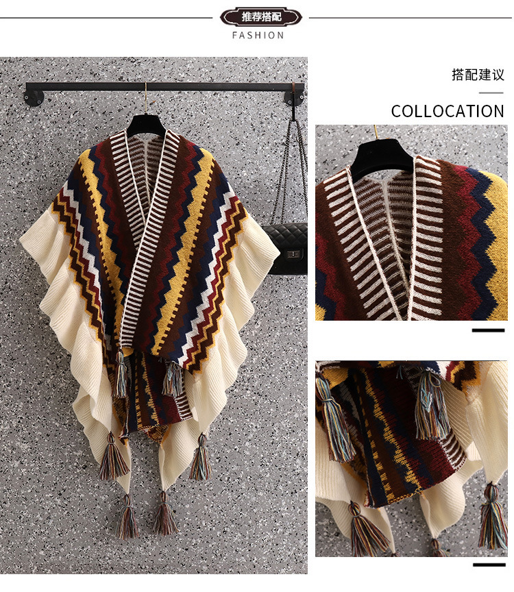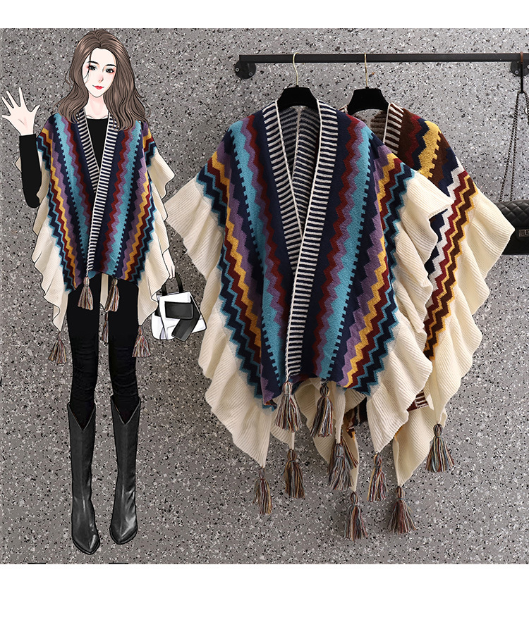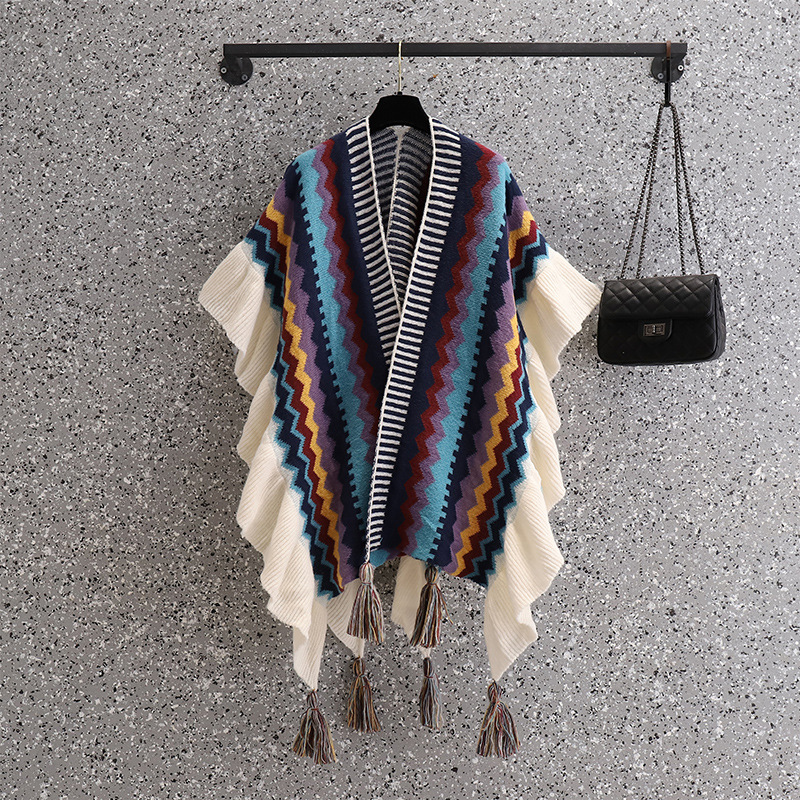 에스닉 스타일 스웨터 술 숄 코트 여성의 가을과 겨울 겉옷 케이프 망토 디자인 불규칙한 카디건 탑