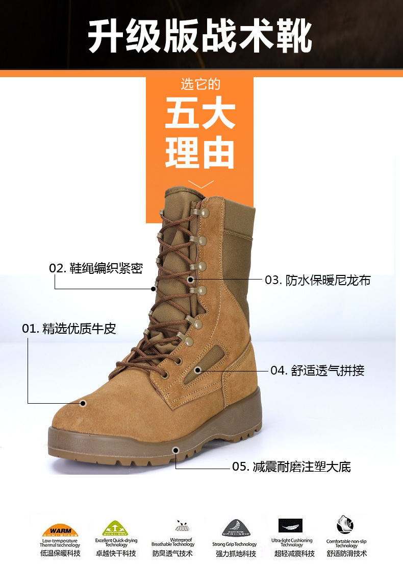 Spergomey 전투 부츠 전술 남성용 하이탑 랜드 부츠 야외 신발 군사 부츠 가죽 사출 성형 아웃솔