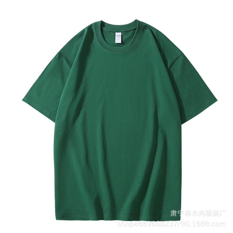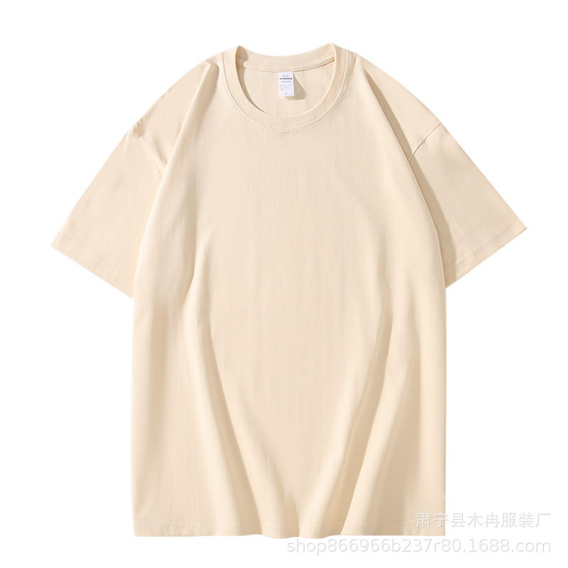 여름 남성 의류 220g 헤비급 순수 코튼 반팔 티셔츠 남성 루즈 솔리드 컬러 바닥 셔츠 트렌디 브랜드 티셔츠 오프 숄더 반소매스토어 가기