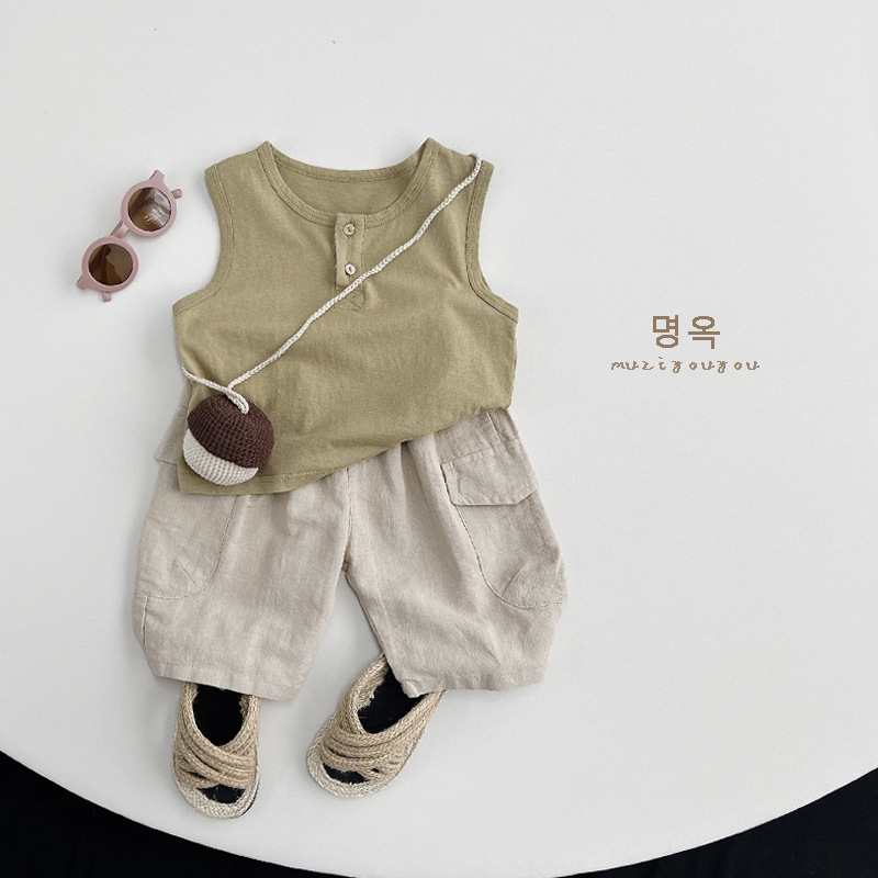 면과 린넨의 트렌디한 스타일~26 여름 아동 7부 바지 남아 캐주얼 워크웨어 반바지 여아 일본식 한국 스타일 바지스토어 가기