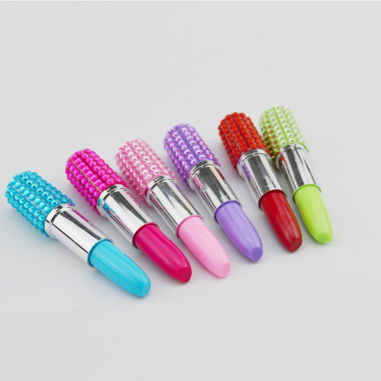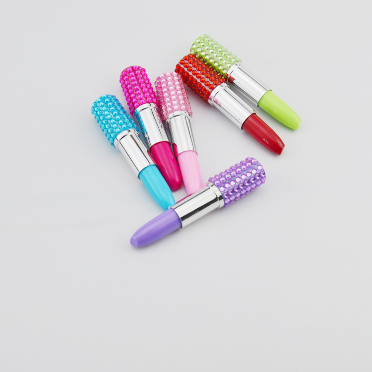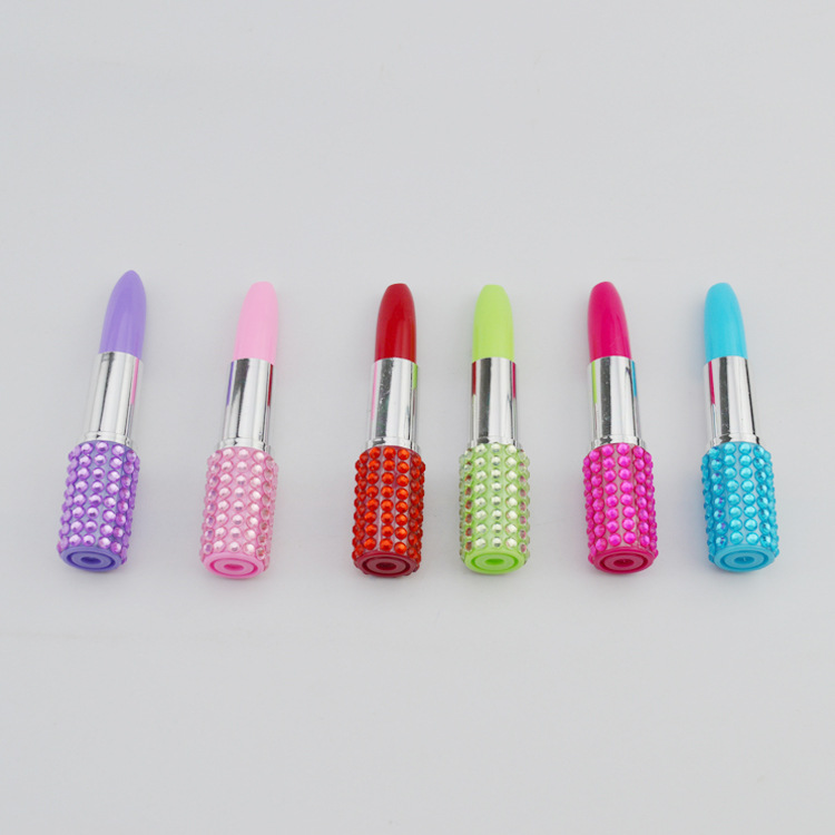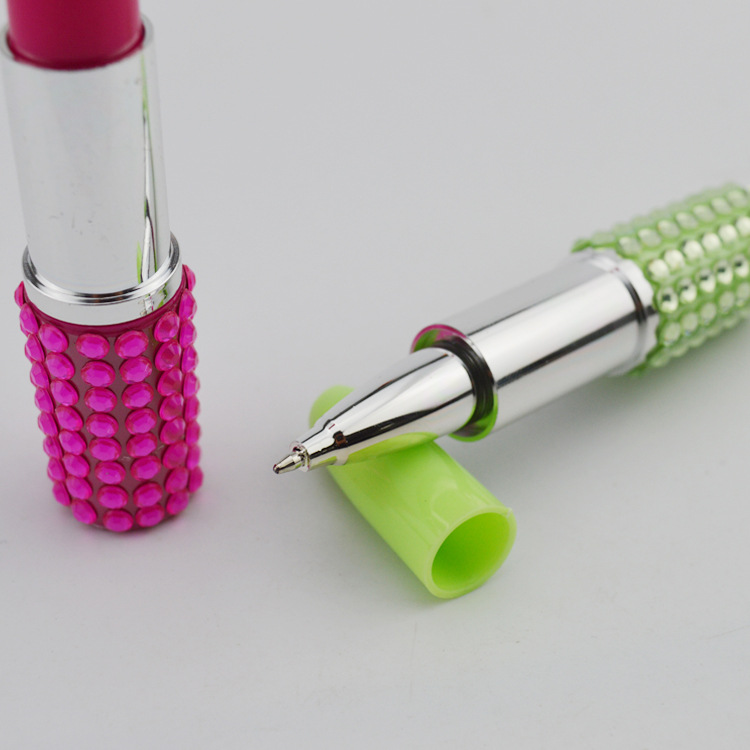 창의적인 문구류 만화 귀여운 한국 스타일 립스틱 모양 다이아몬드 장식 볼펜 립스틱 모양 선물용 펜 사무용 펜