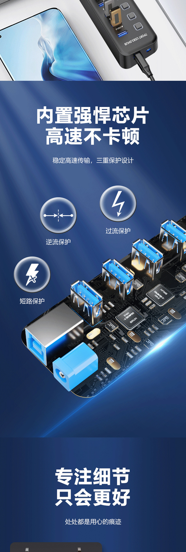 공장 도매 USB3.0 분배기 7-in-one 도킹 스테이션 노트 플러그 멀티 포트 컴퓨터 어댑터 도킹 스테이션스토어 가기