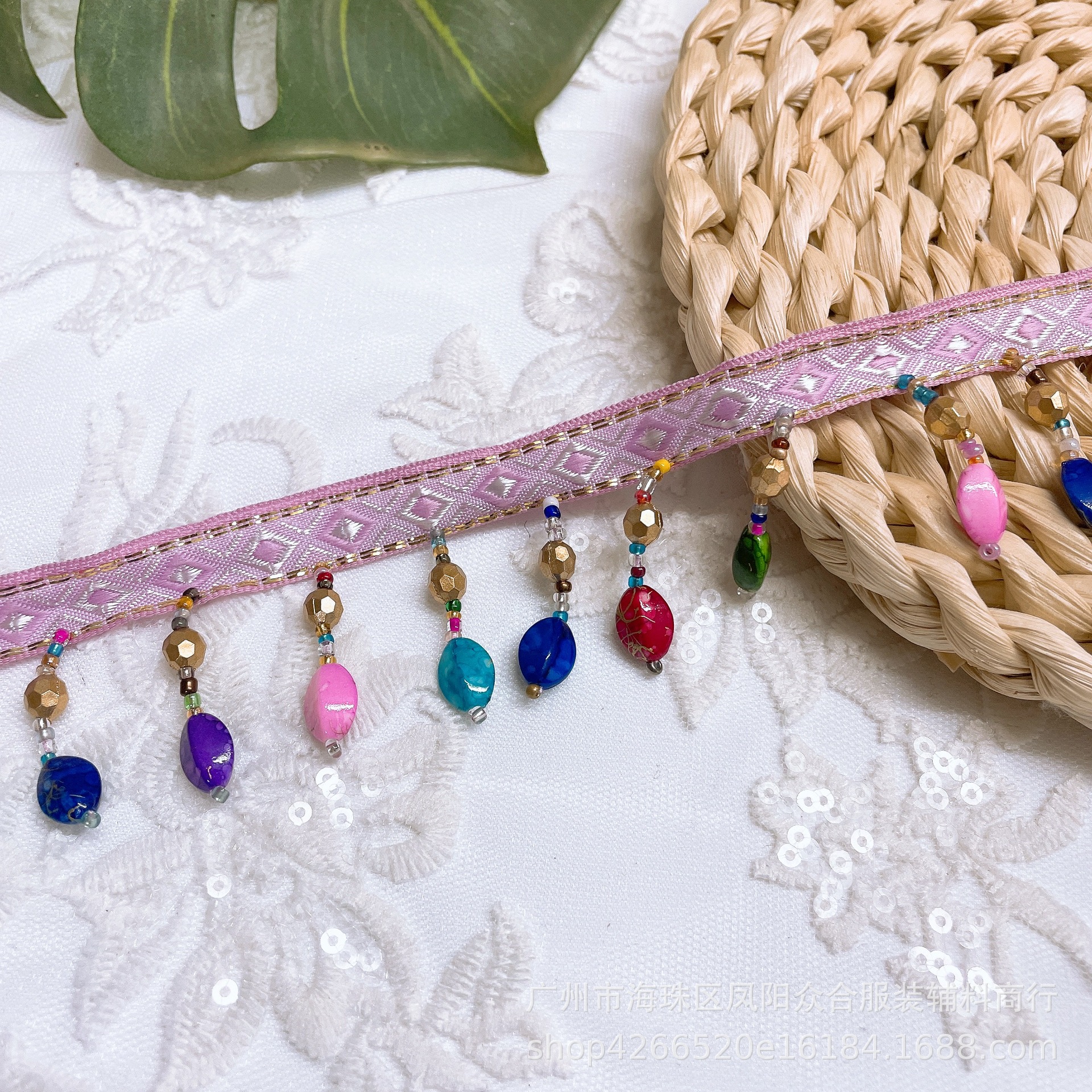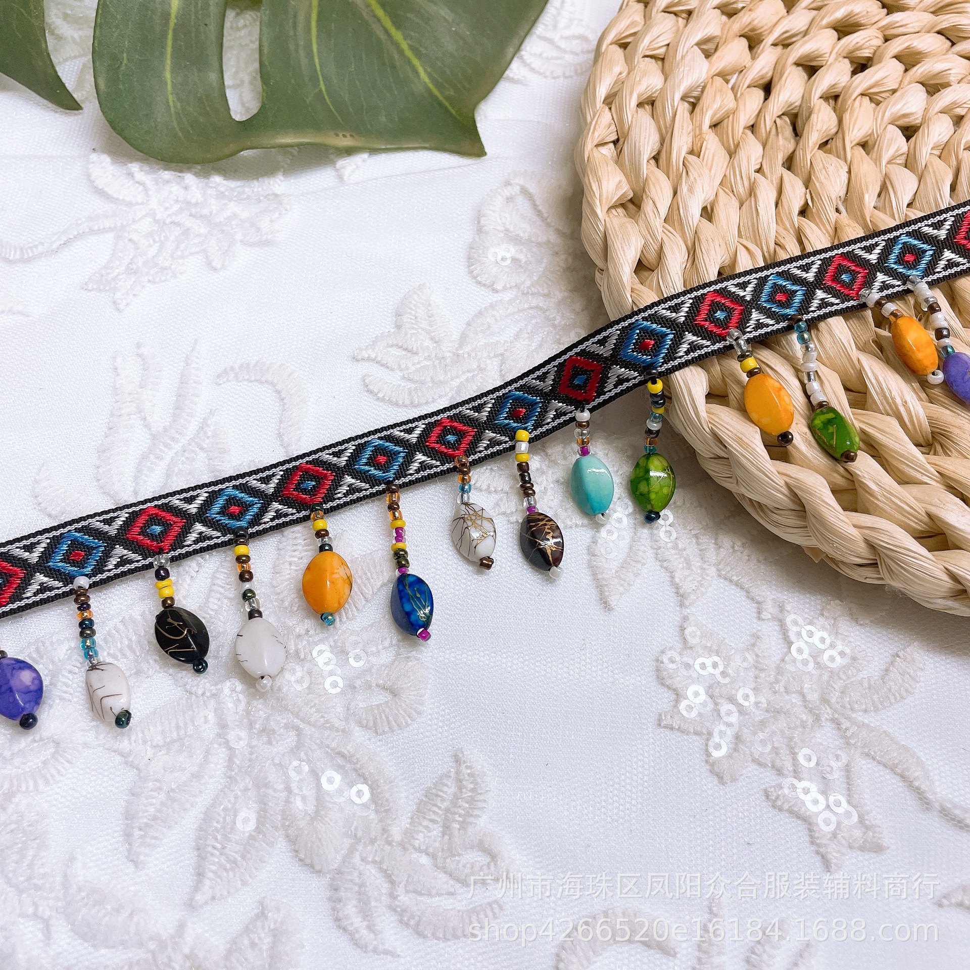 수제 비즈 컬러 비즈 술 레이스 DIY 에스닉 스타일 신발 모자 가방 액세서리 보헤미안 교수형 비즈스토어 가기