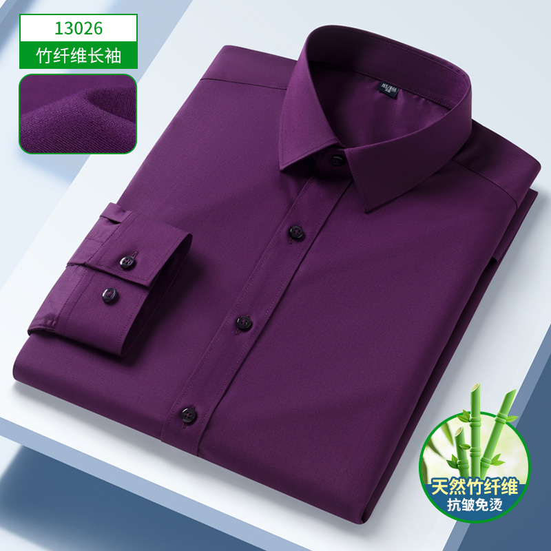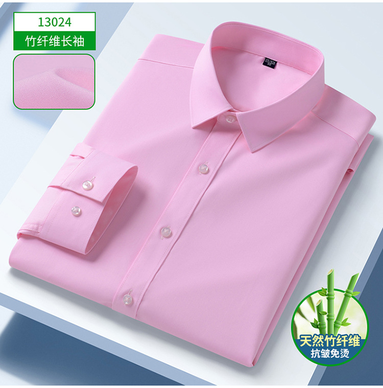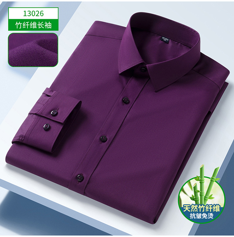 가을과 겨울 대나무 섬유 셔츠 남성용 긴팔 셔츠 단색 비즈니스 슬림핏 통기성 캐주얼 셔츠 맞춤 로고스토어 가기
