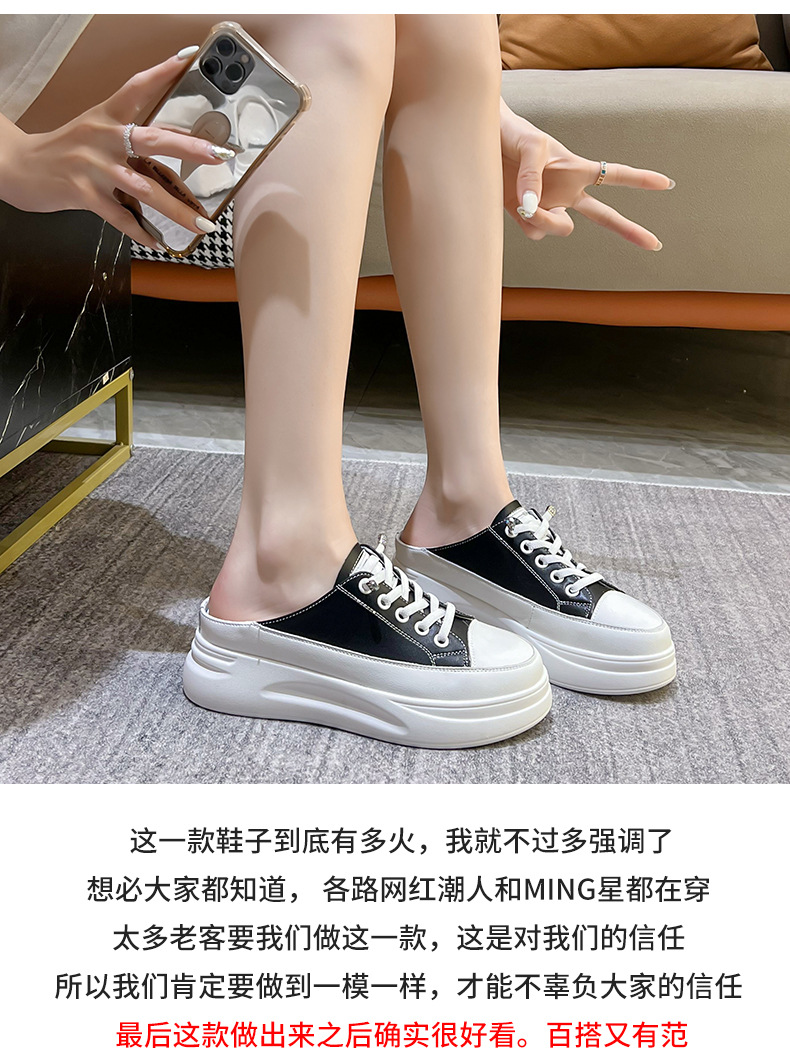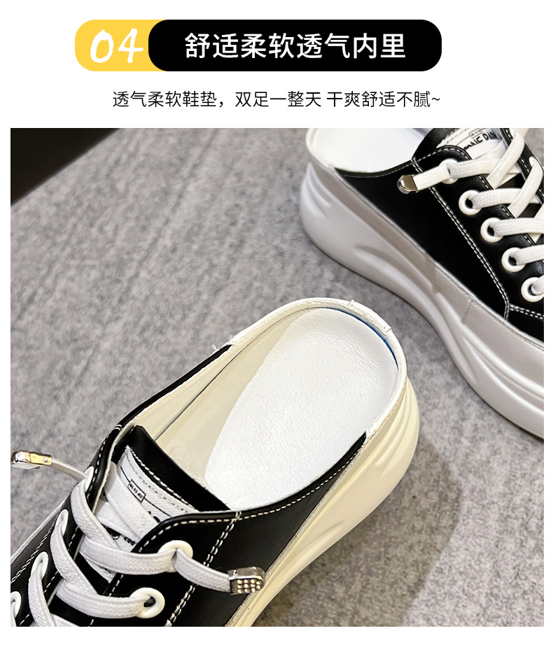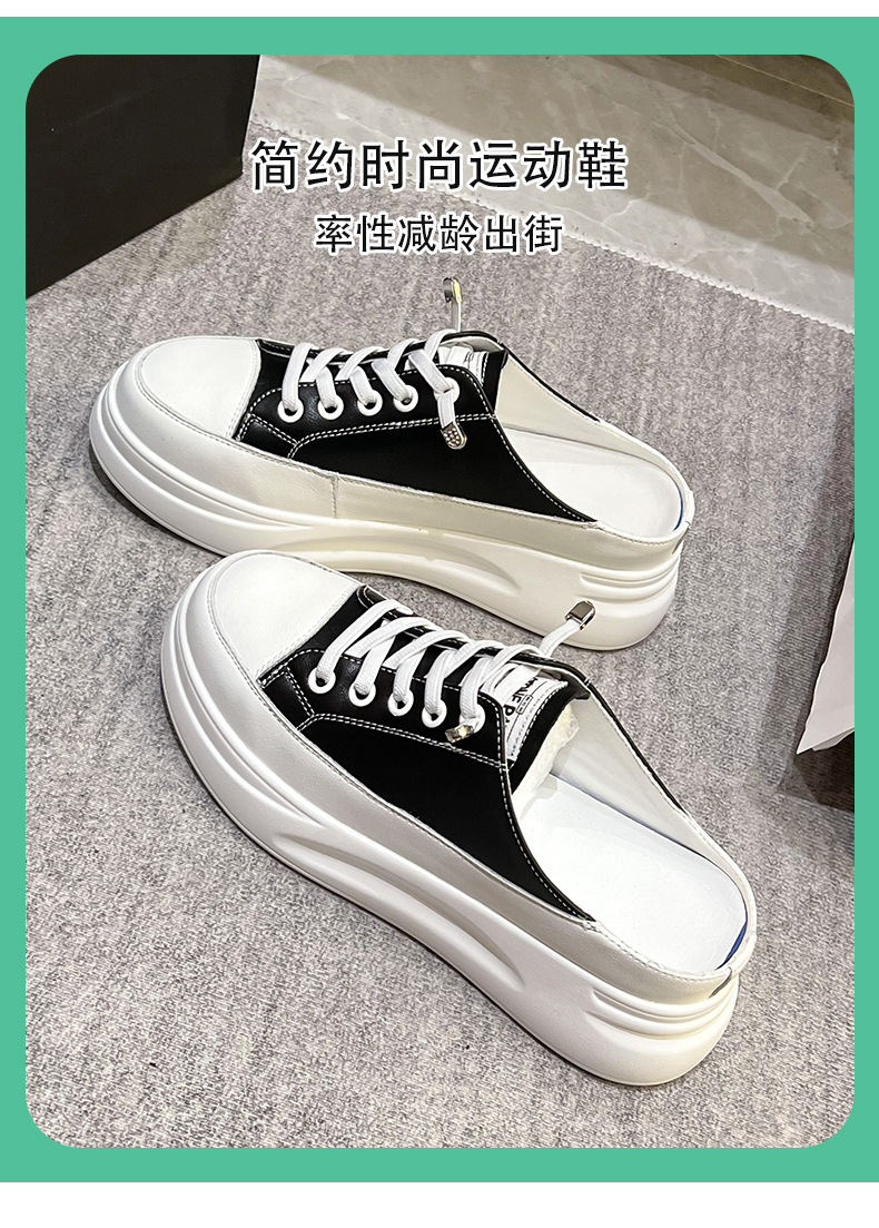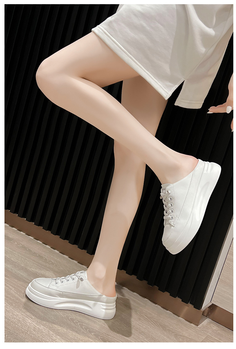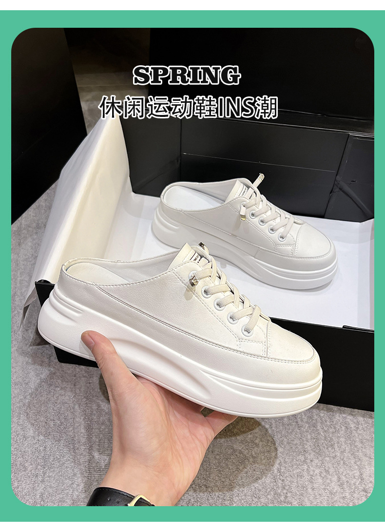 Baotou 하프 드래그 여성용 흰색 신발 2025 여름 새 스타일 정품 가죽 두꺼운 밑창 학생 증가 한국 스타일 컬러 매칭 캐주얼 신발