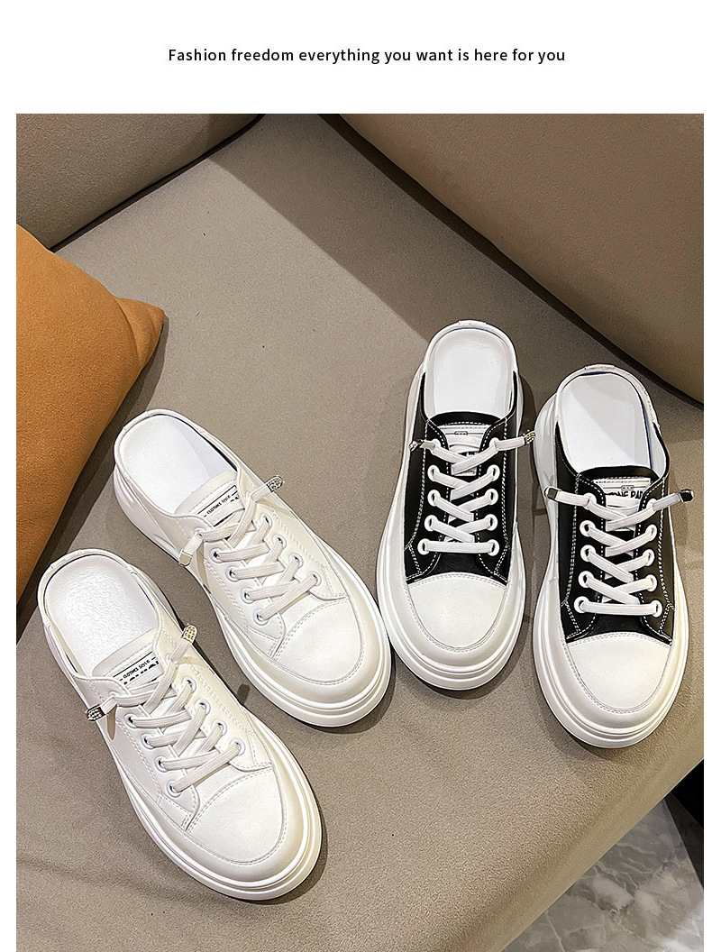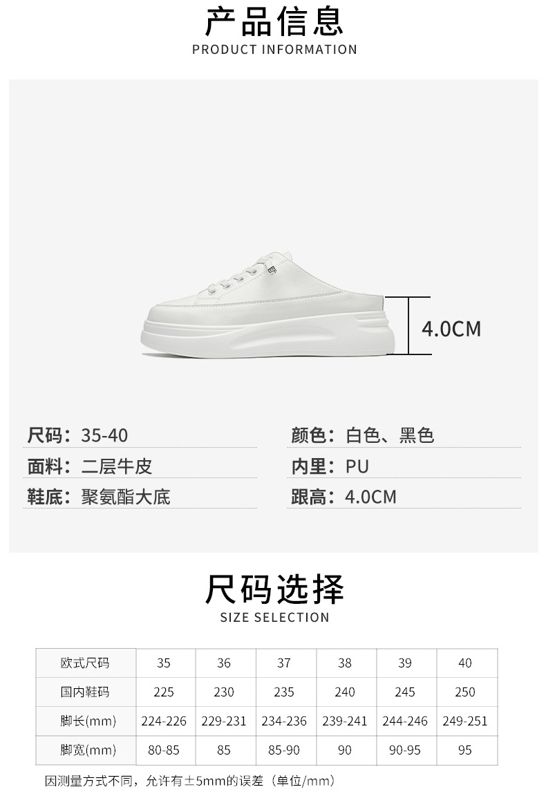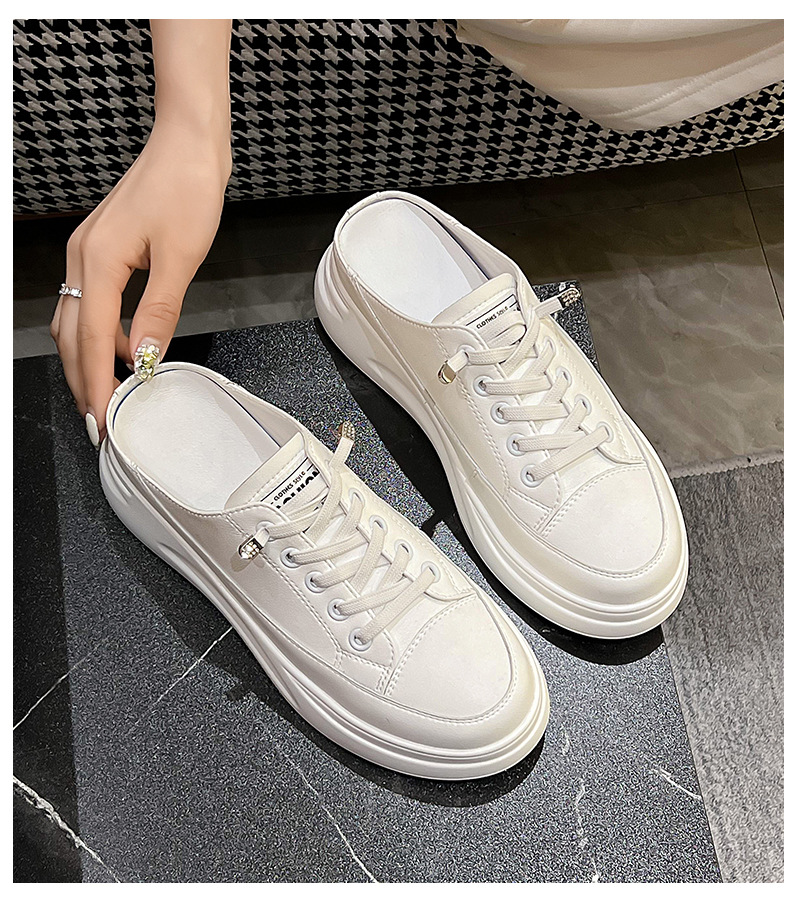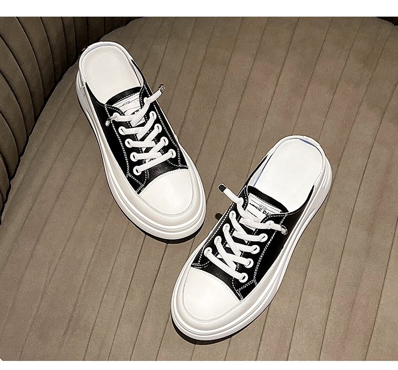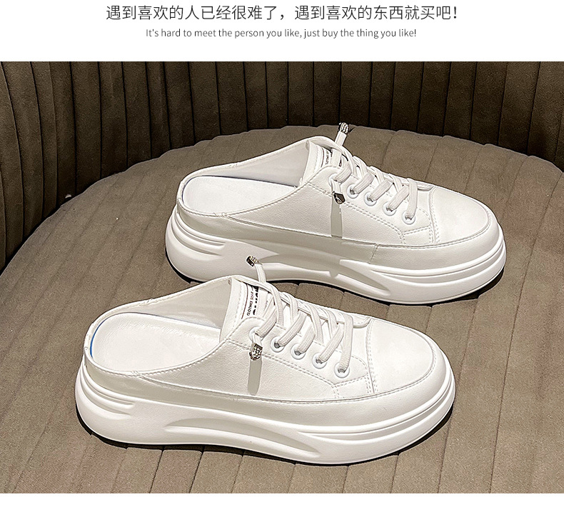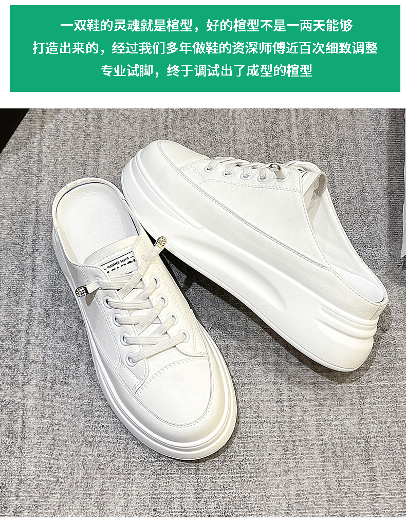Baotou 하프 드래그 여성용 흰색 신발 2025 여름 새 스타일 정품 가죽 두꺼운 밑창 학생 증가 한국 스타일 컬러 매칭 캐주얼 신발