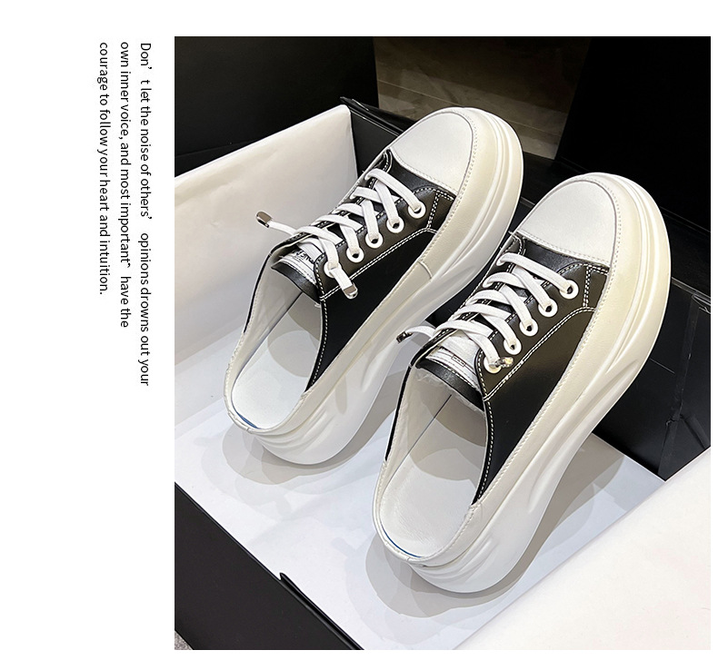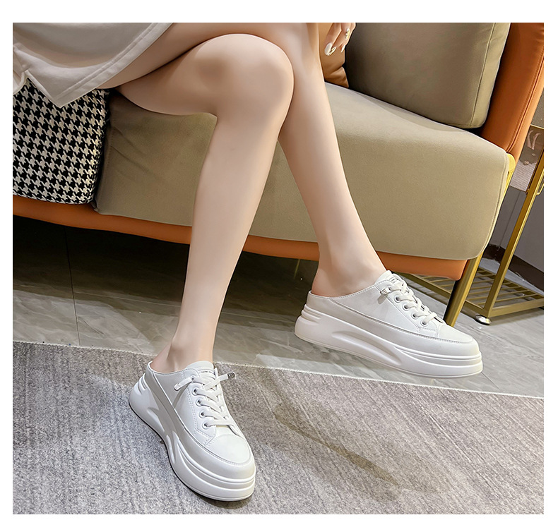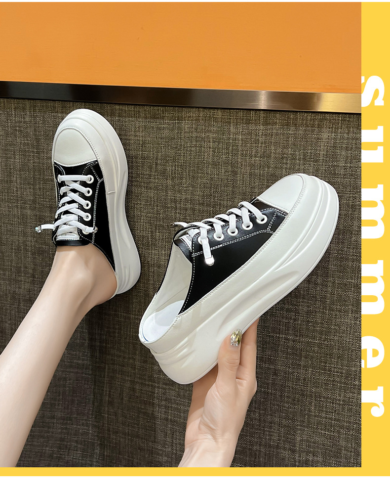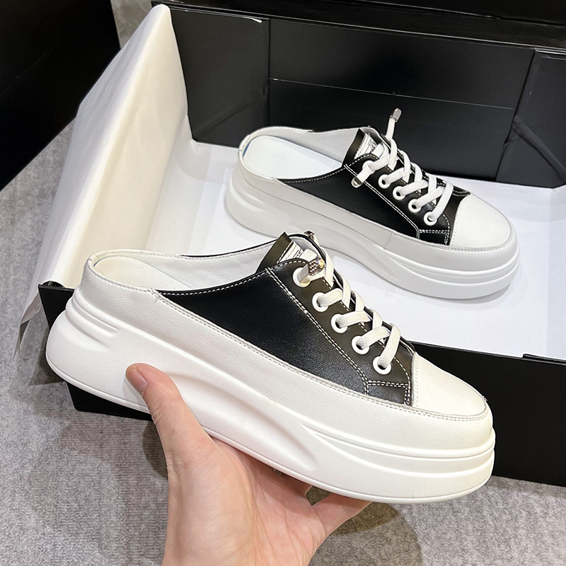 Baotou 하프 드래그 여성용 흰색 신발 2025 여름 새 스타일 정품 가죽 두꺼운 밑창 학생 증가 한국 스타일 컬러 매칭 캐주얼 신발스토어 가기