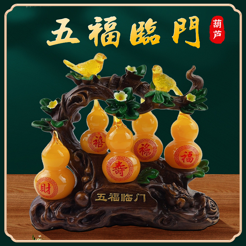 • 7254 작은 부와 번영 오복 블루 골드 조롱박 20*13*23cm