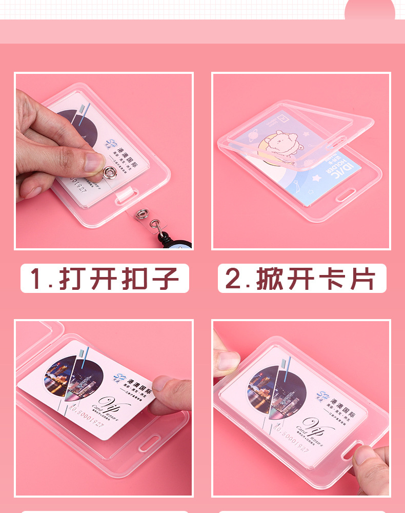 델리 ID 카드 어린이 카드 세트 학생 ID 세트 끈 개폐식 버튼이있는 캠퍼스 카드 작업 카드 버스 카드