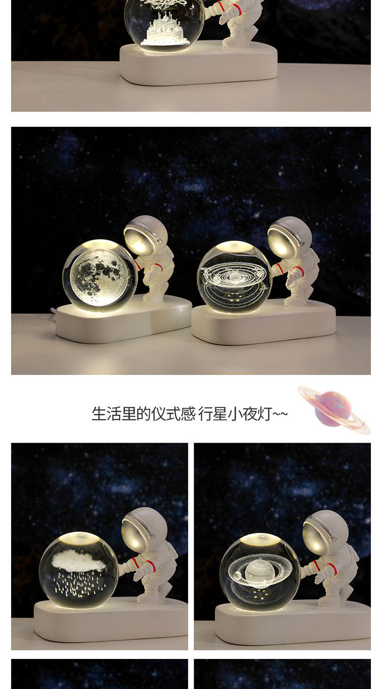 크리 에이 티브 우주 비행사 별이 빛나는 하늘 크리스탈 공 야간 조명 데스크탑 빛나는 장식 분위기 조명 장식품 소년 생일 선물스토어 가기