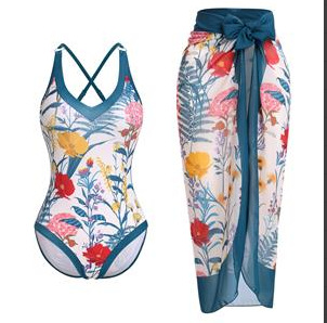 Qiao Jiayuan 유럽 및 미국 스타일 여성용 원피스 수영복 슬림핏 투피스 프린트 쉬폰 스커트 수영복 세트 온천 장면스토어 가기