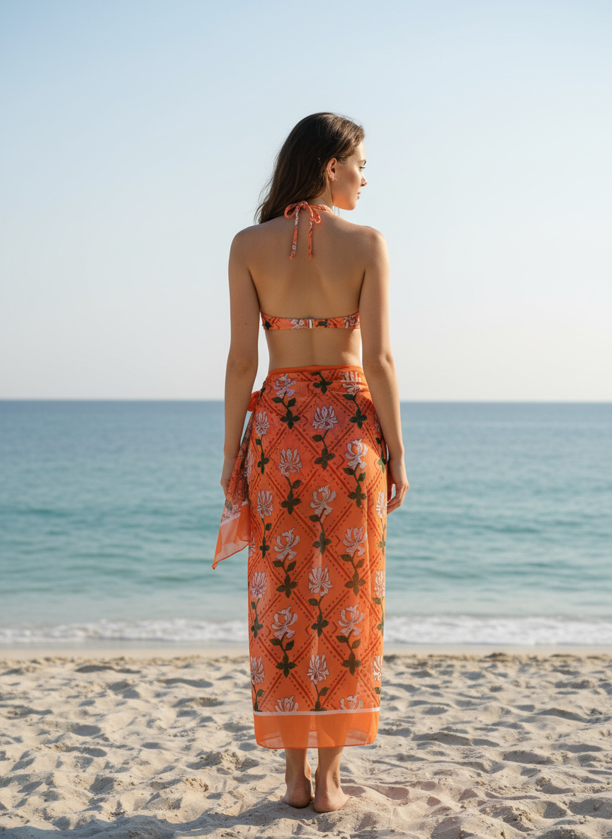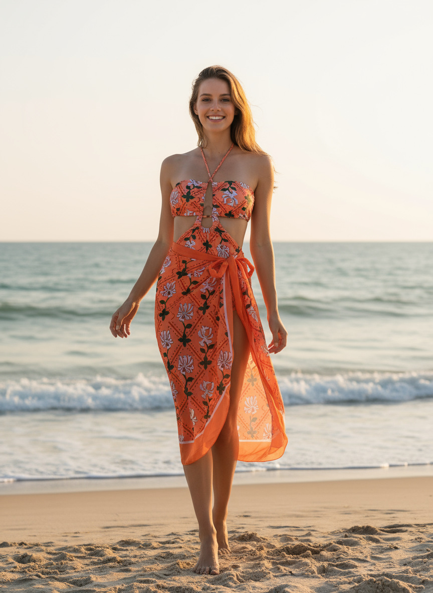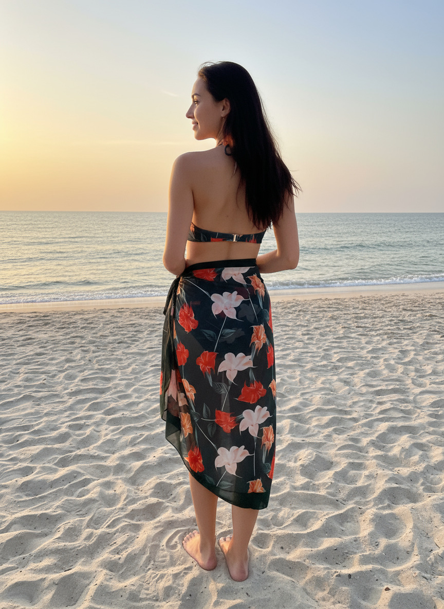 Qiao Jiayuan 유럽 및 미국 스타일 여성용 원피스 수영복 슬림핏 투피스 프린트 쉬폰 스커트 수영복 세트 온천 장면