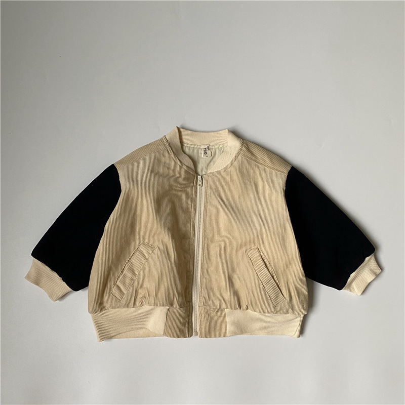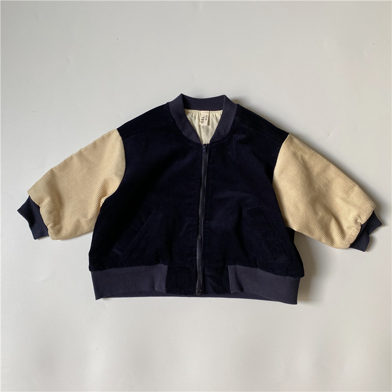 GL-kids 한국 가을과 겨울 어린이 코듀로이 코튼 자켓 소년 소녀 라운드 패치 느슨한 두꺼운 탑스토어 가기