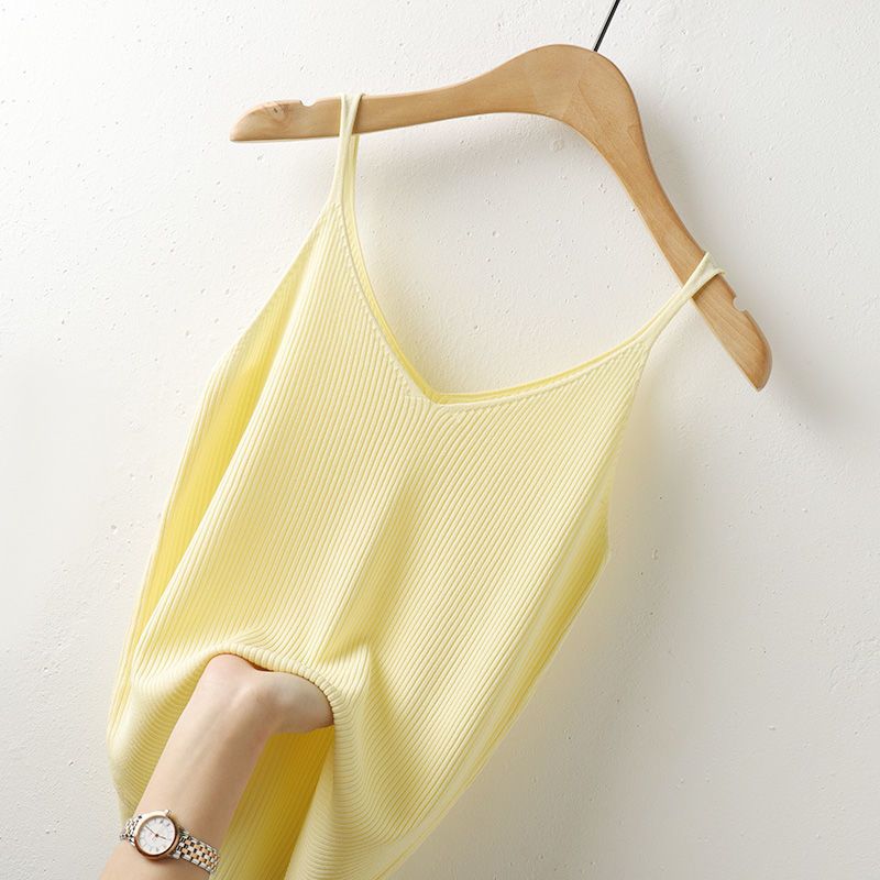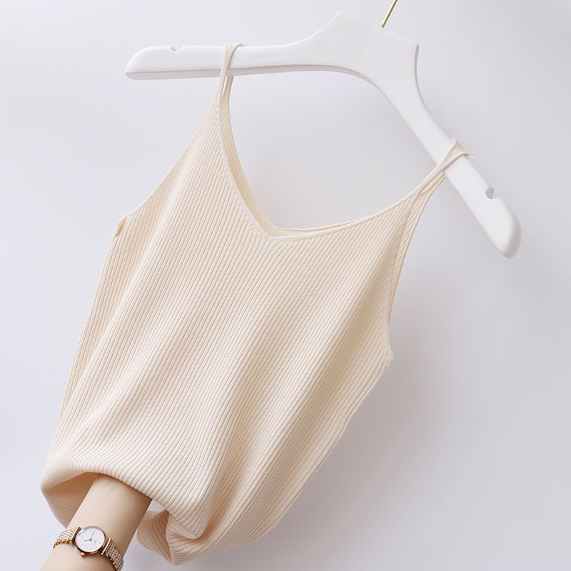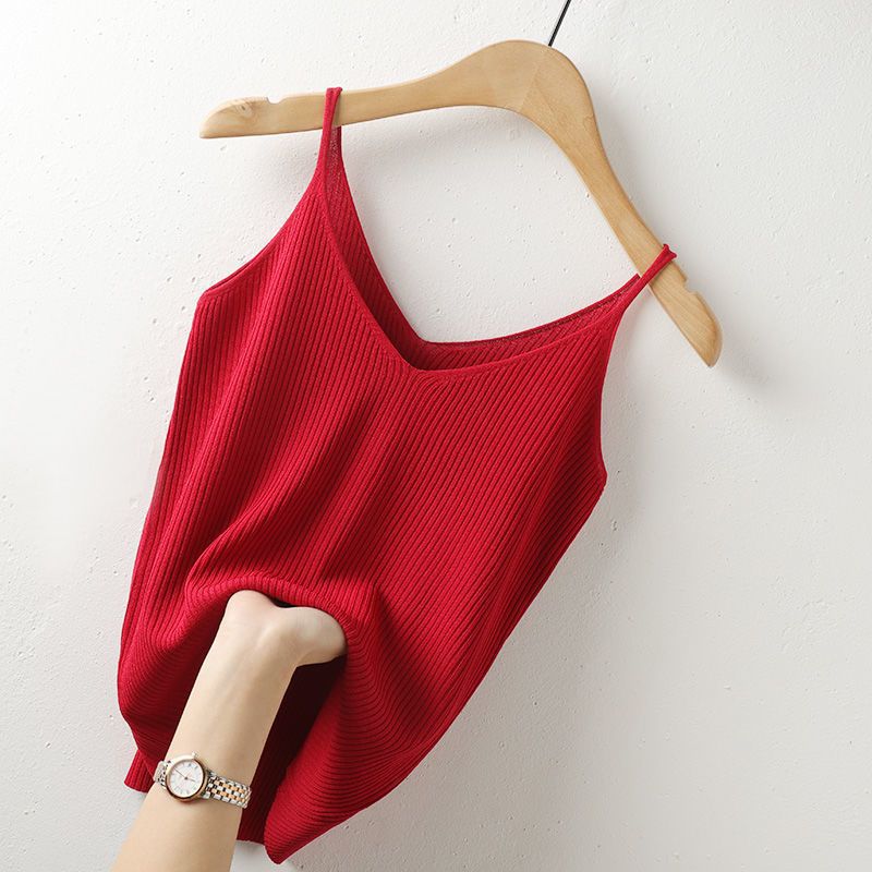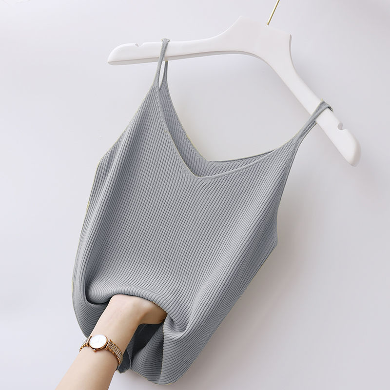 플러스 사이즈 캐미솔 여성베이스 V-넥 아이스 실크 섹시한 짧은 스레드 니트 모든 경기 현-우아한 스타일 탑