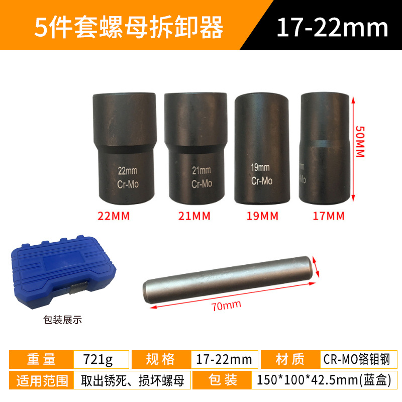 자동차 타이어 손상 나사 너트 나사 볼트 미끄럼 방지 제거 소켓 렌치 공구 추출기