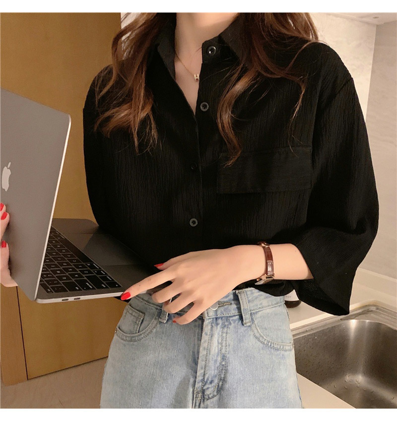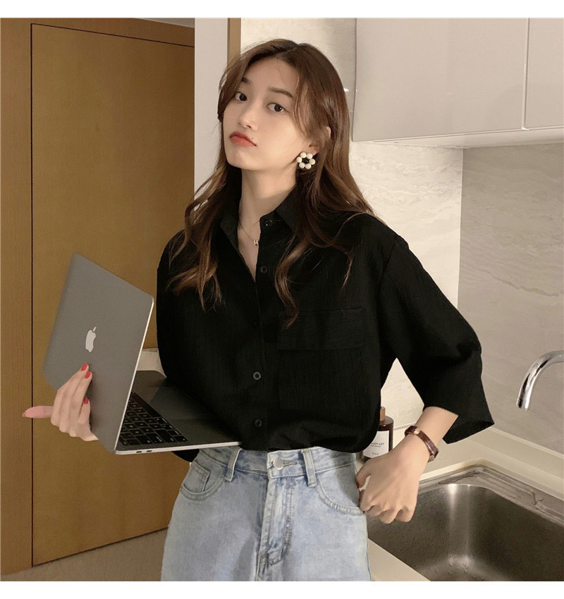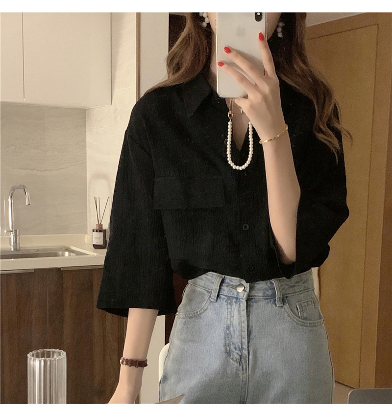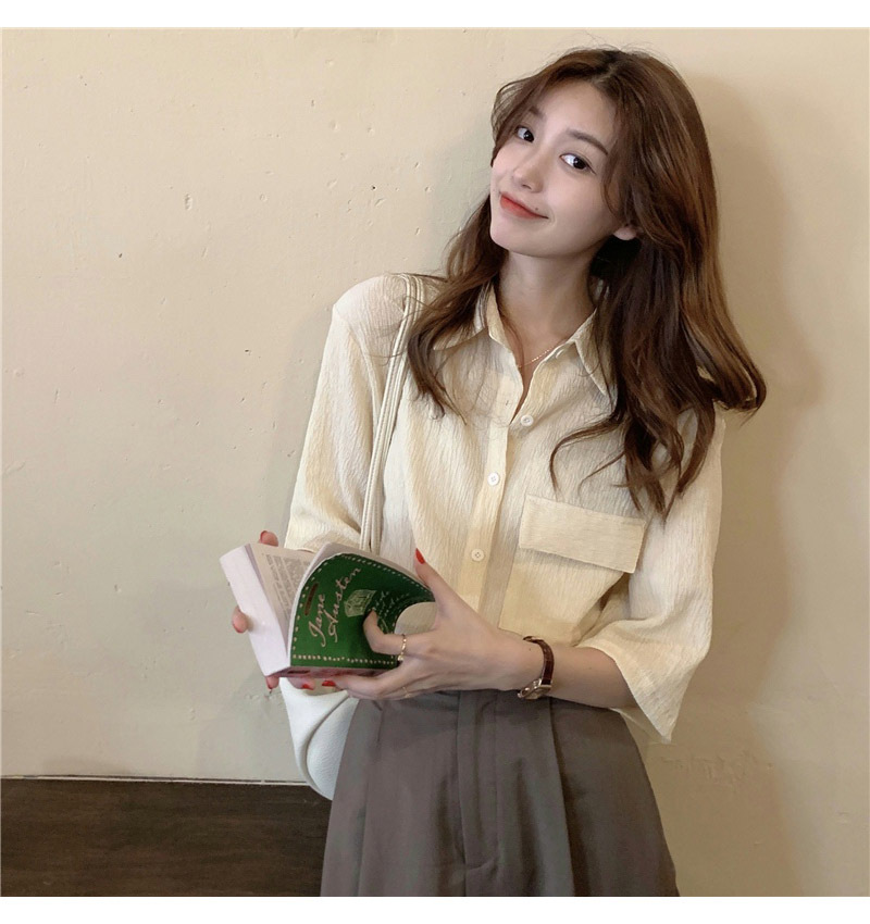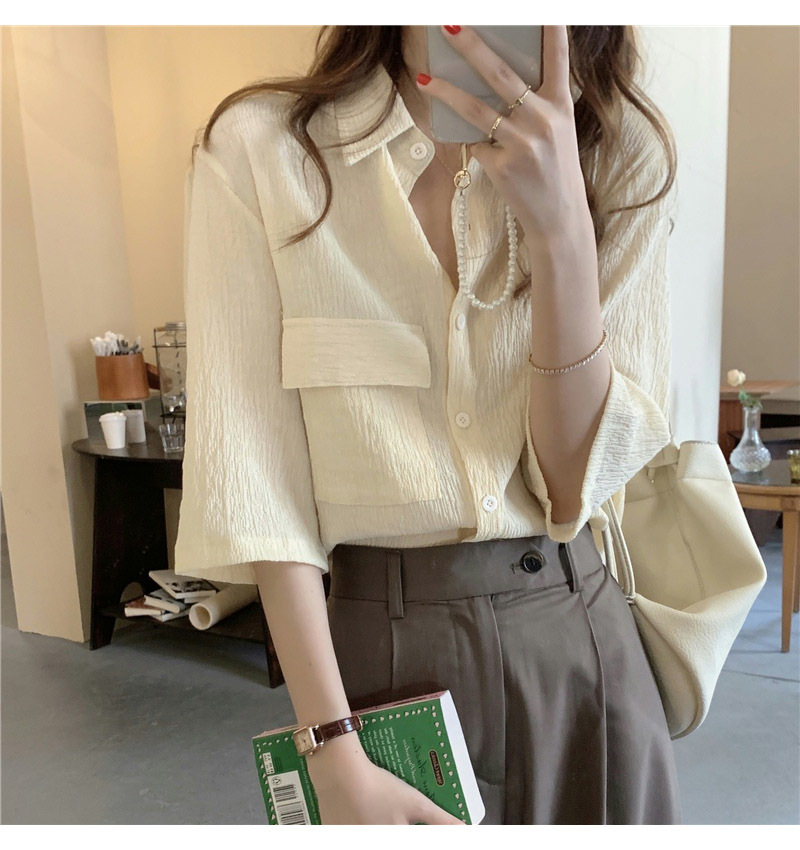 여성을위한 레트로 7부 소매 셔츠 여름 새로운 한국 스타일 디자인 플리츠 탑 게으른 스타일 루즈 셔츠