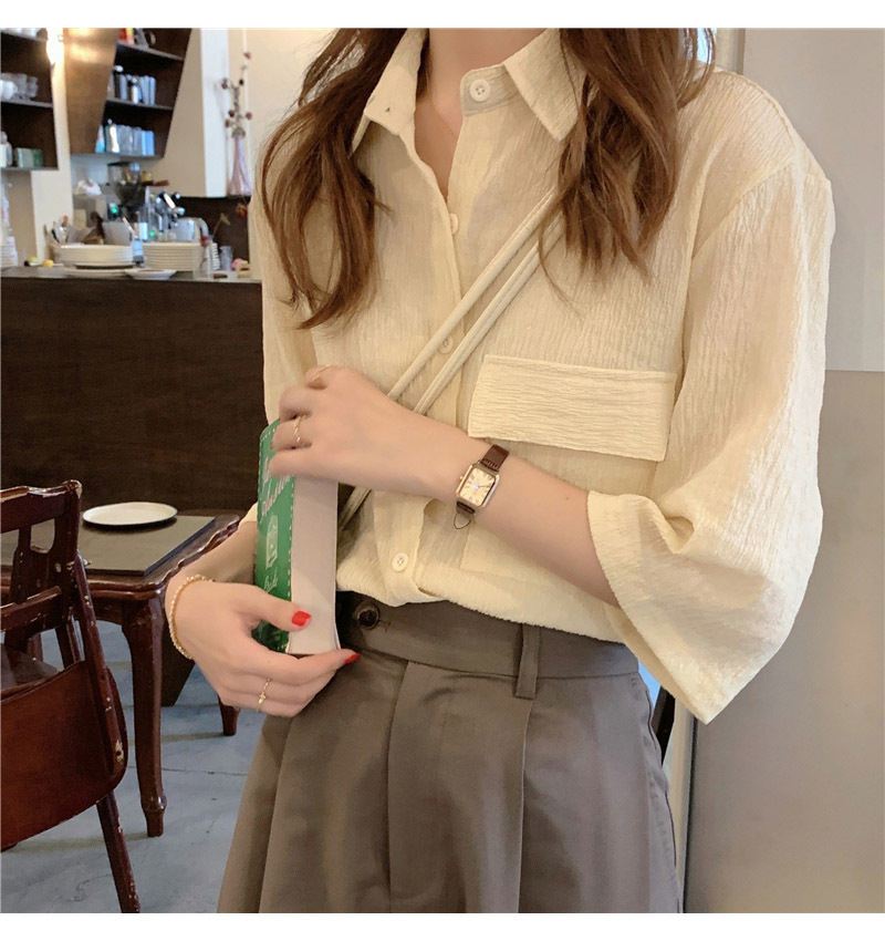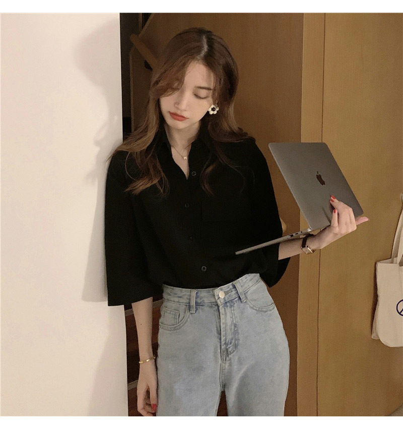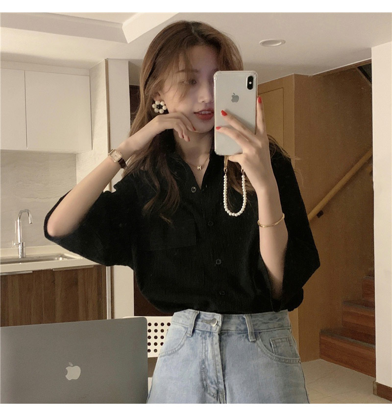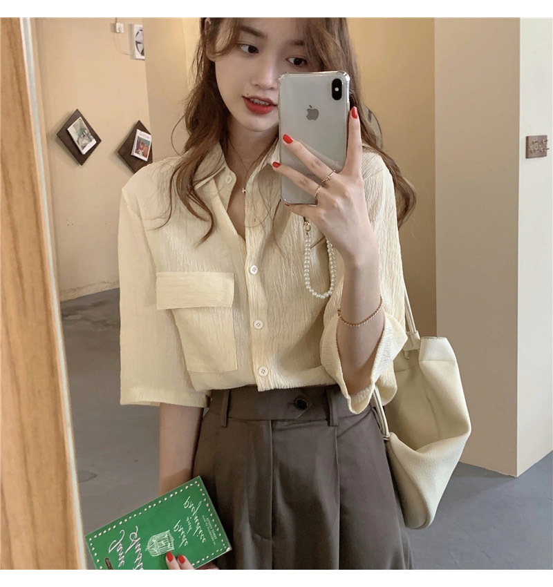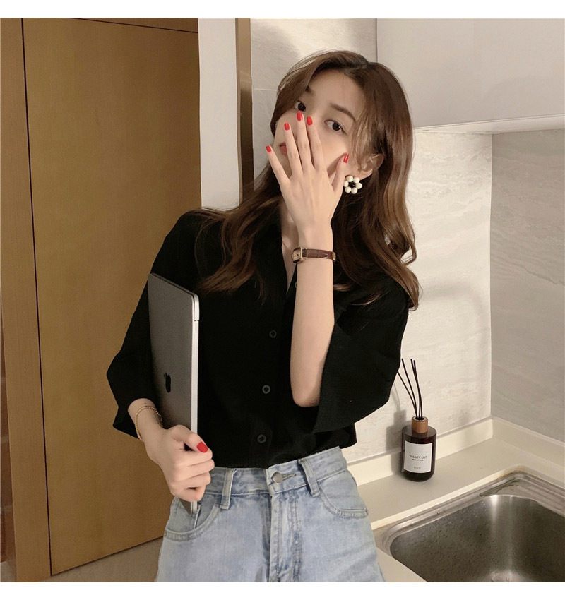 여성을위한 레트로 7부 소매 셔츠 여름 새로운 한국 스타일 디자인 플리츠 탑 게으른 스타일 루즈 셔츠