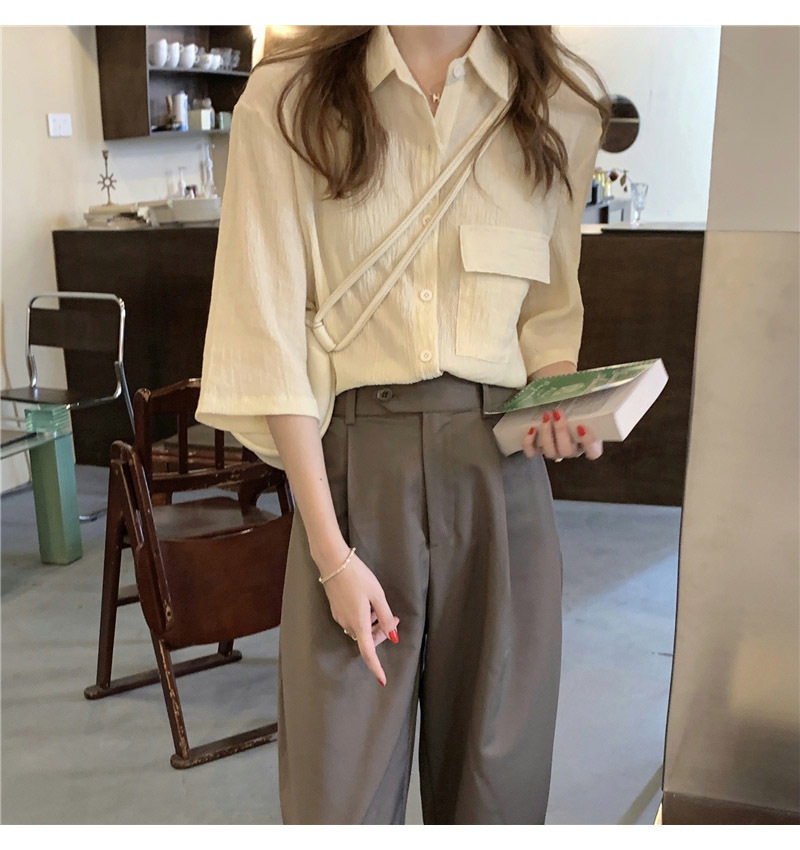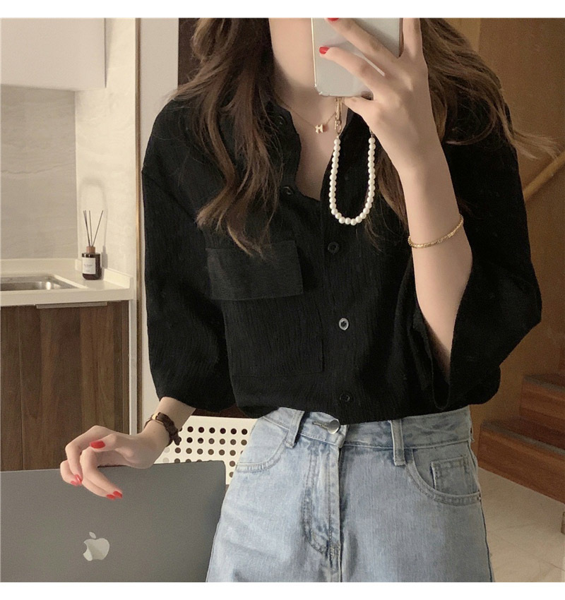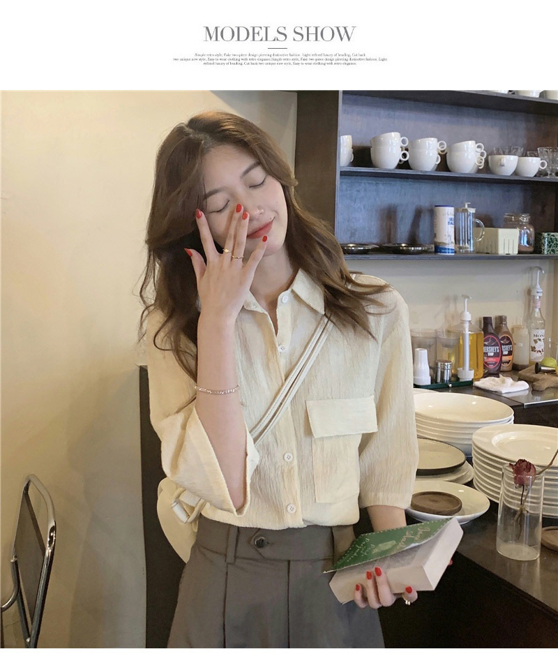 여성을위한 레트로 7부 소매 셔츠 여름 새로운 한국 스타일 디자인 플리츠 탑 게으른 스타일 루즈 셔츠스토어 가기