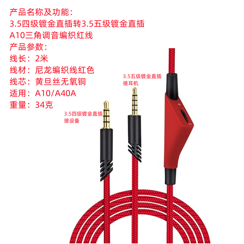 A10 A40 A30 A50 나일론 꼰 빨간색 2 m 튜닝 헤드셋 링크 라인 오디오 라인 게임 라인