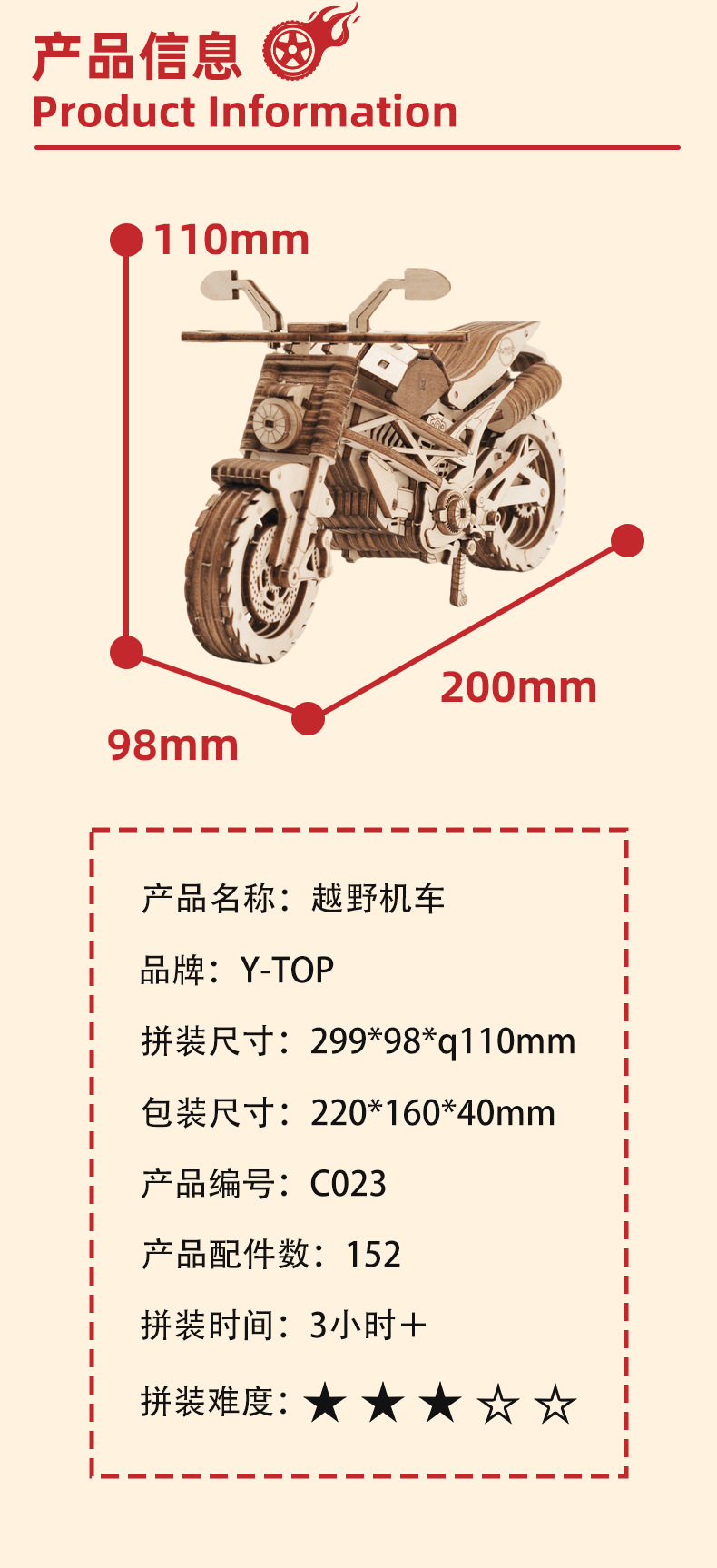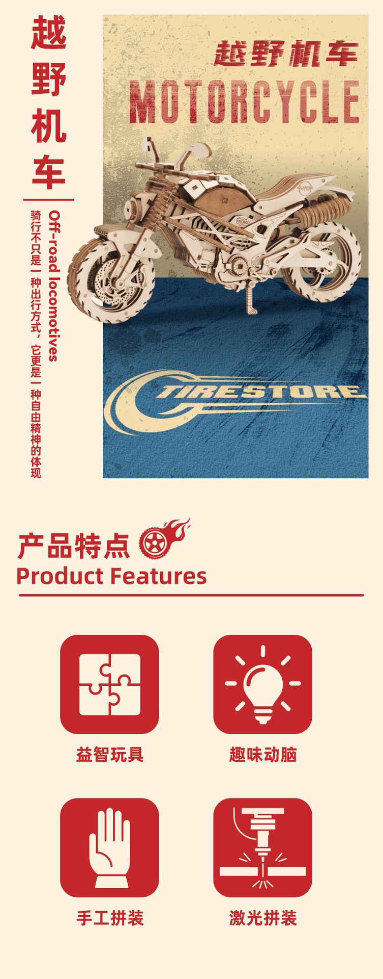 DIY 오프로드 바이크 모델 크로스보더 목재 조립 장난감 자동차 어린이 교육용 퍼즐 창의적인 3D 입체 장식품스토어 가기