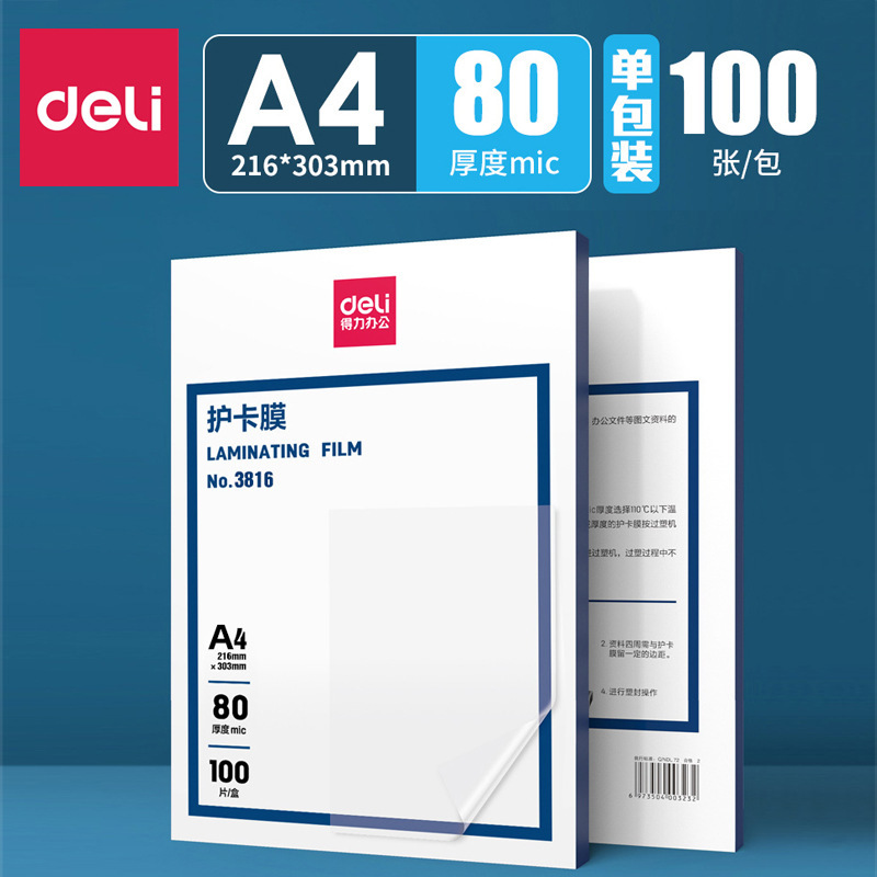 델리 3816 사진 플라스틱 필름 두꺼운 A4 플라스틱 종이 사진 플라스틱 필름 사진 필름 보호 카드 필름 PET 도매