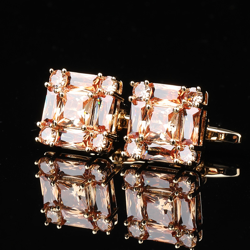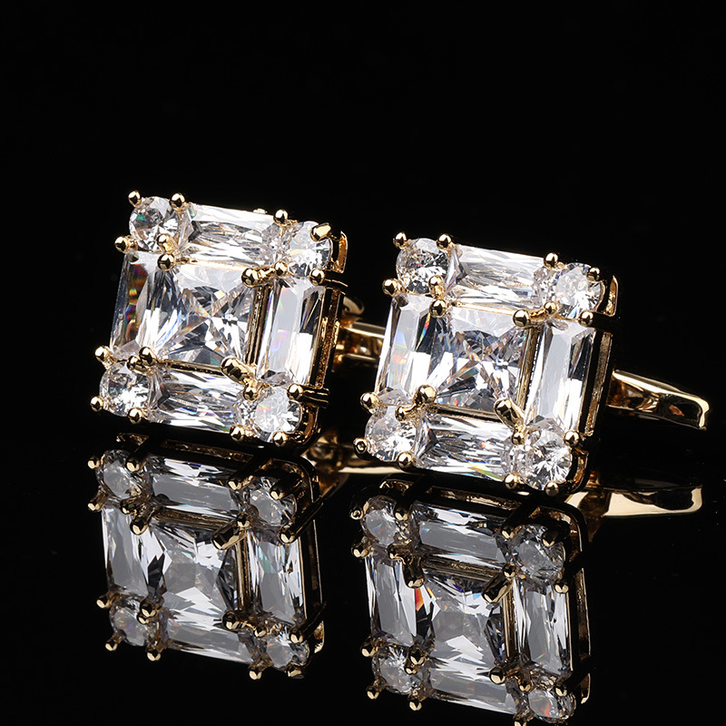 • 골든 화이트 크리스탈 커프스 단추 [선물 상자]