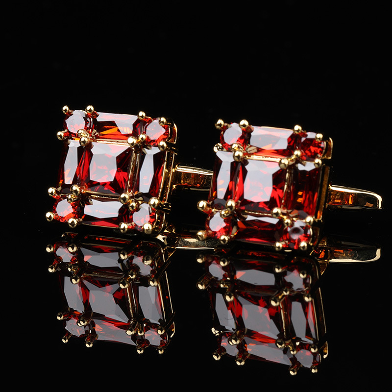 • 골든 레드 크리스탈 커프스 단추 [선물 상자]